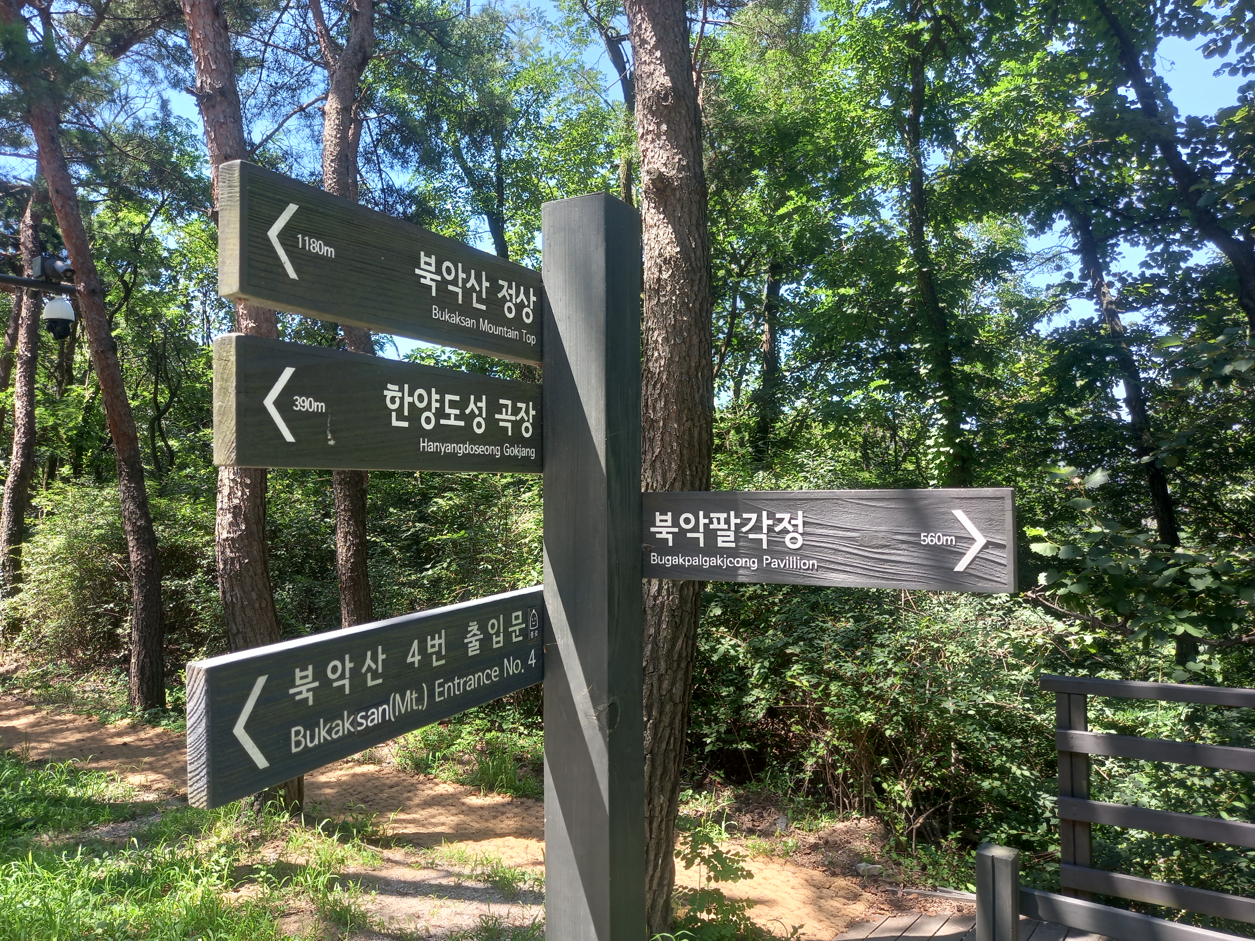 <백악마루에서 백악 곡성과 숙정문 방면 갈림길 이정표>