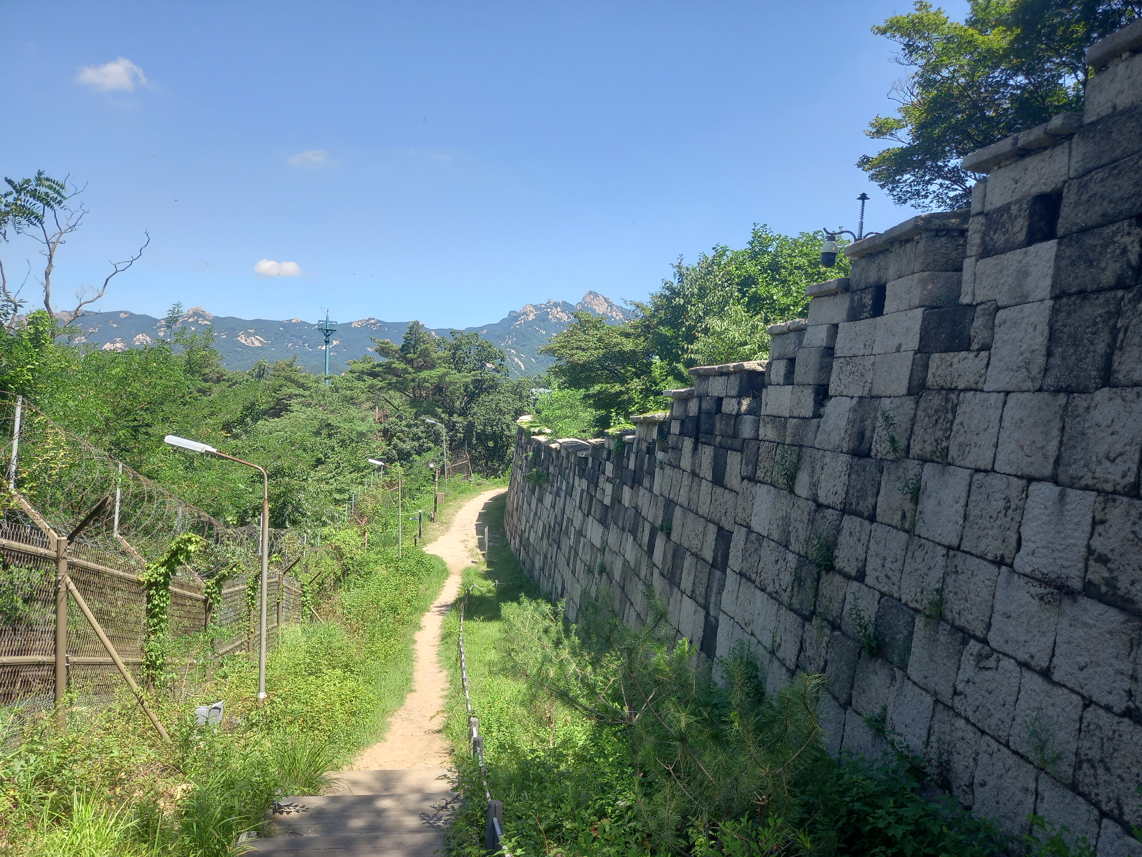 <청운대에서 곡장 방면 한양도성과 등산로 전경>