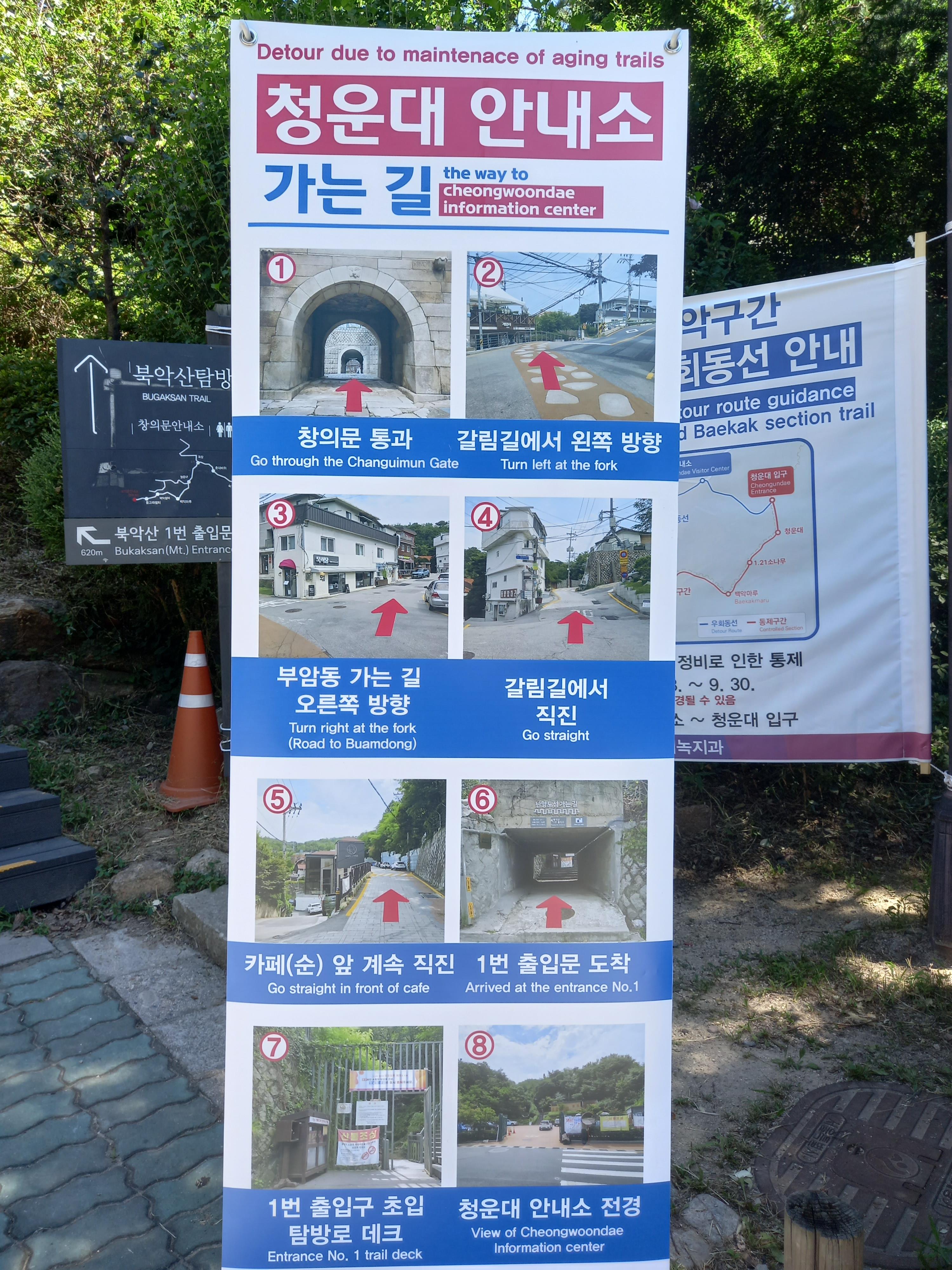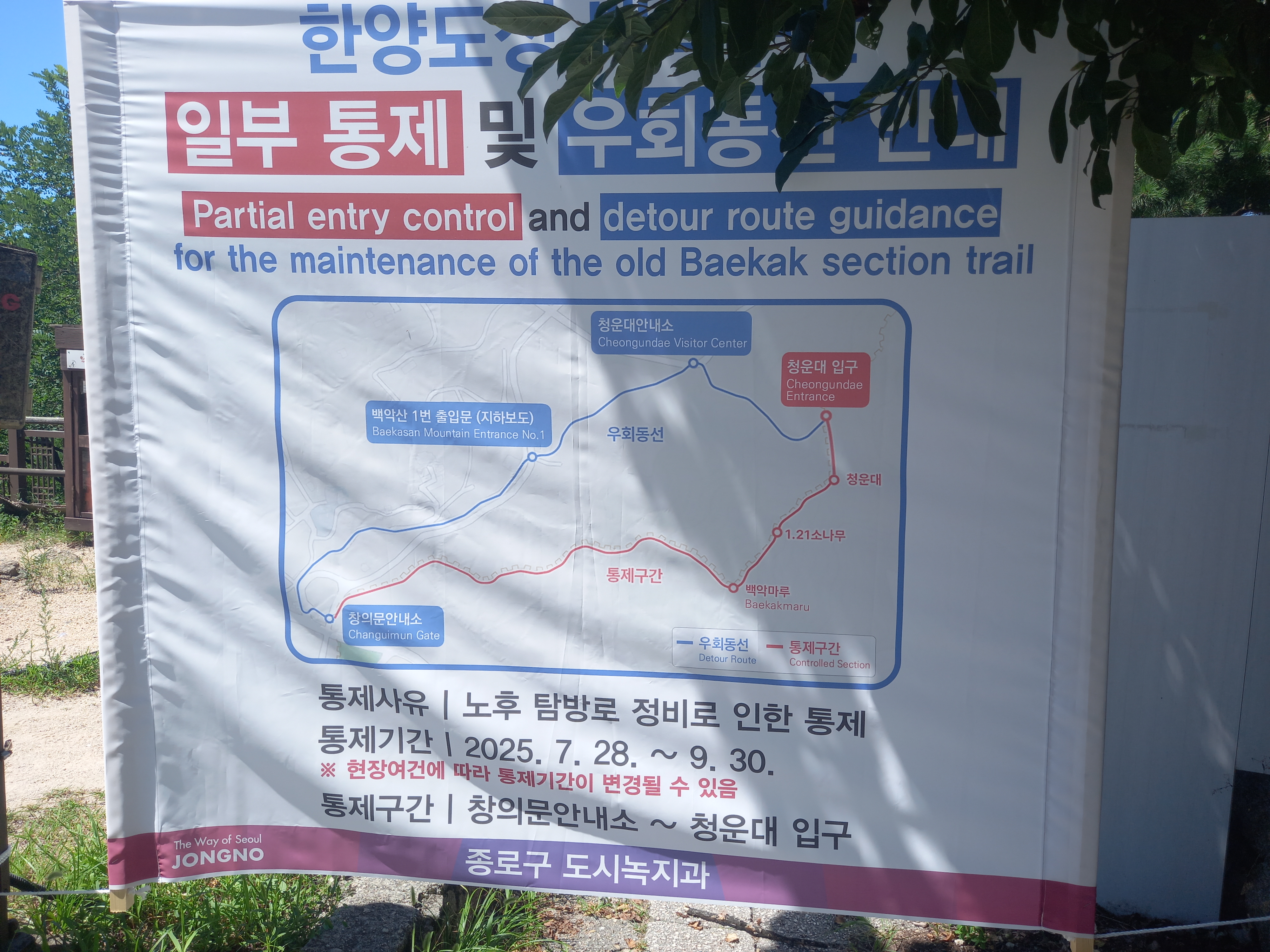 <한양도성 백악구간 일부 통제 및 우회동선 안내 현수막>