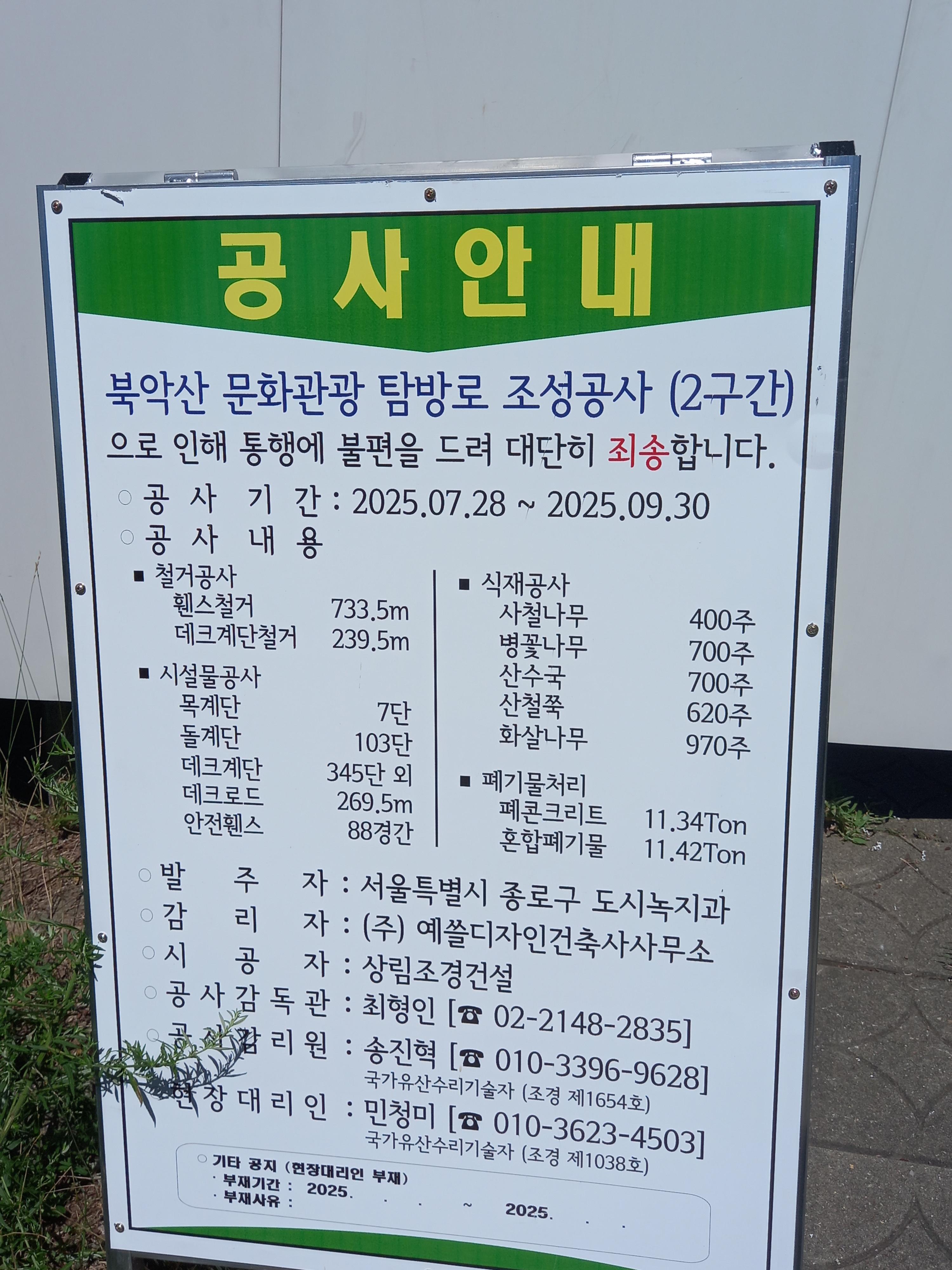 <북악산 문화관광 탐방로 조성공사 안내문>