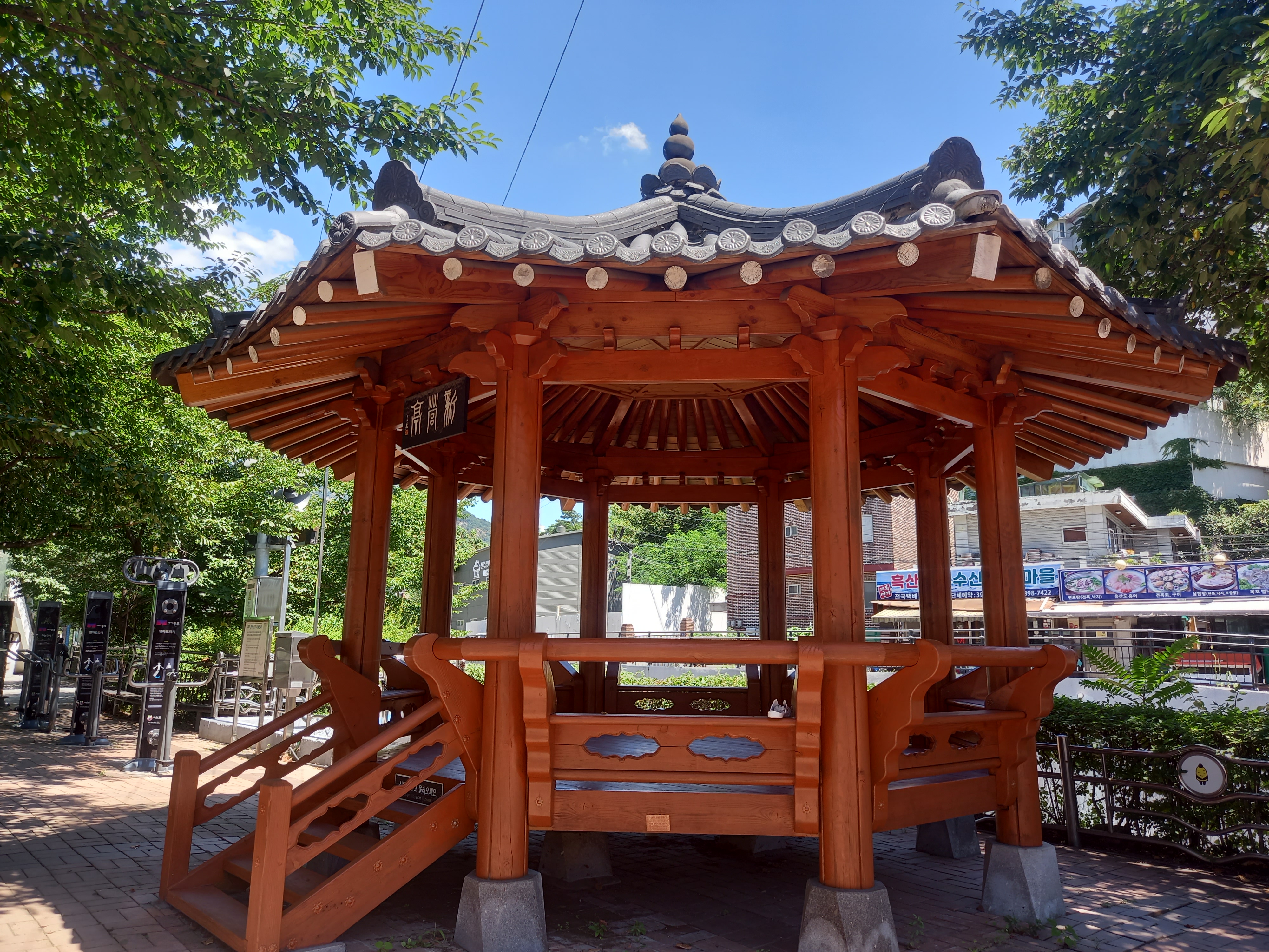 <4번 출입문에서 백사실 계곡 방면 도로변의 데크 쉼터>