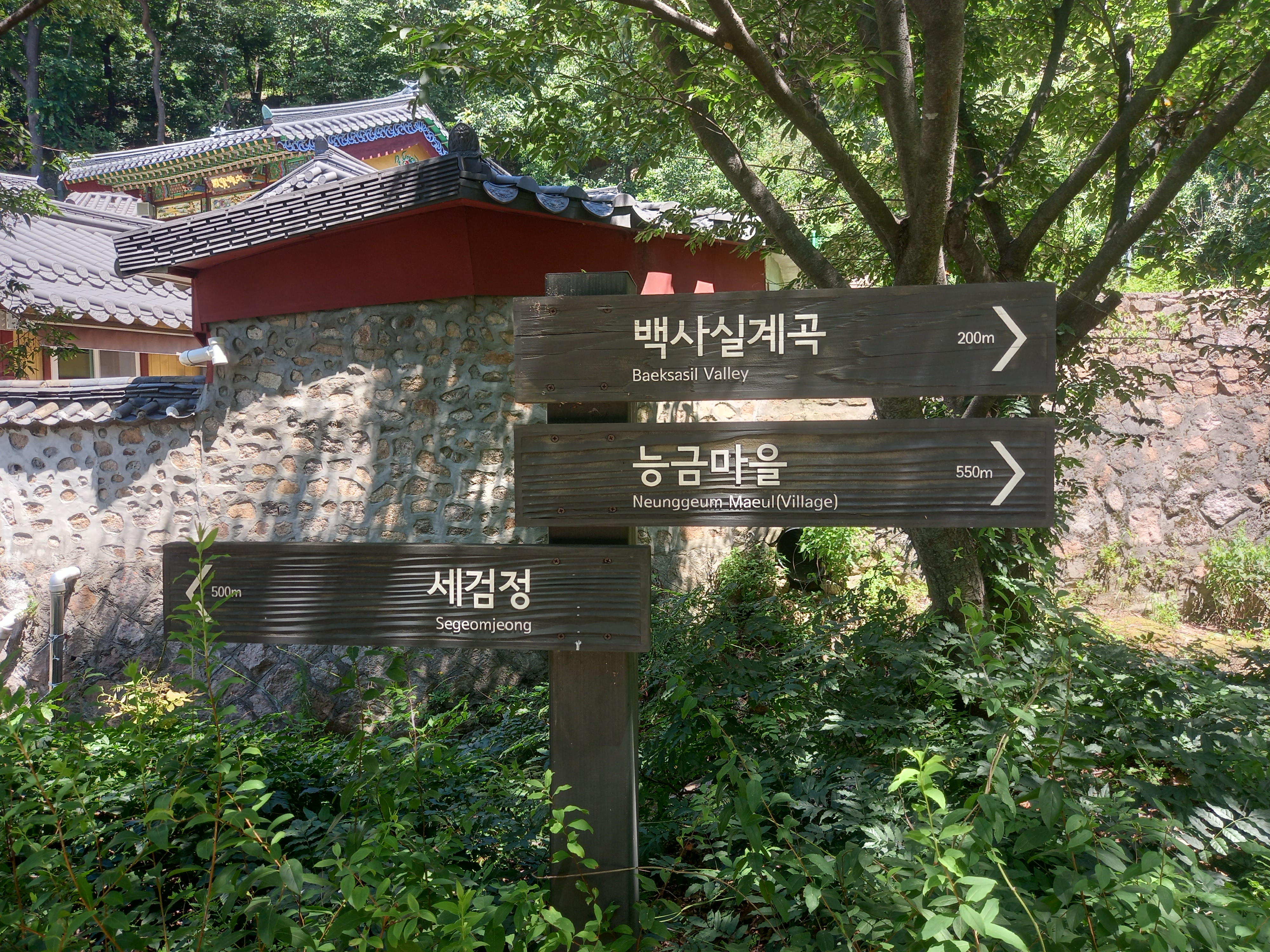 <백사실계곡과 능금마을에서 세검정 방면 이정표>