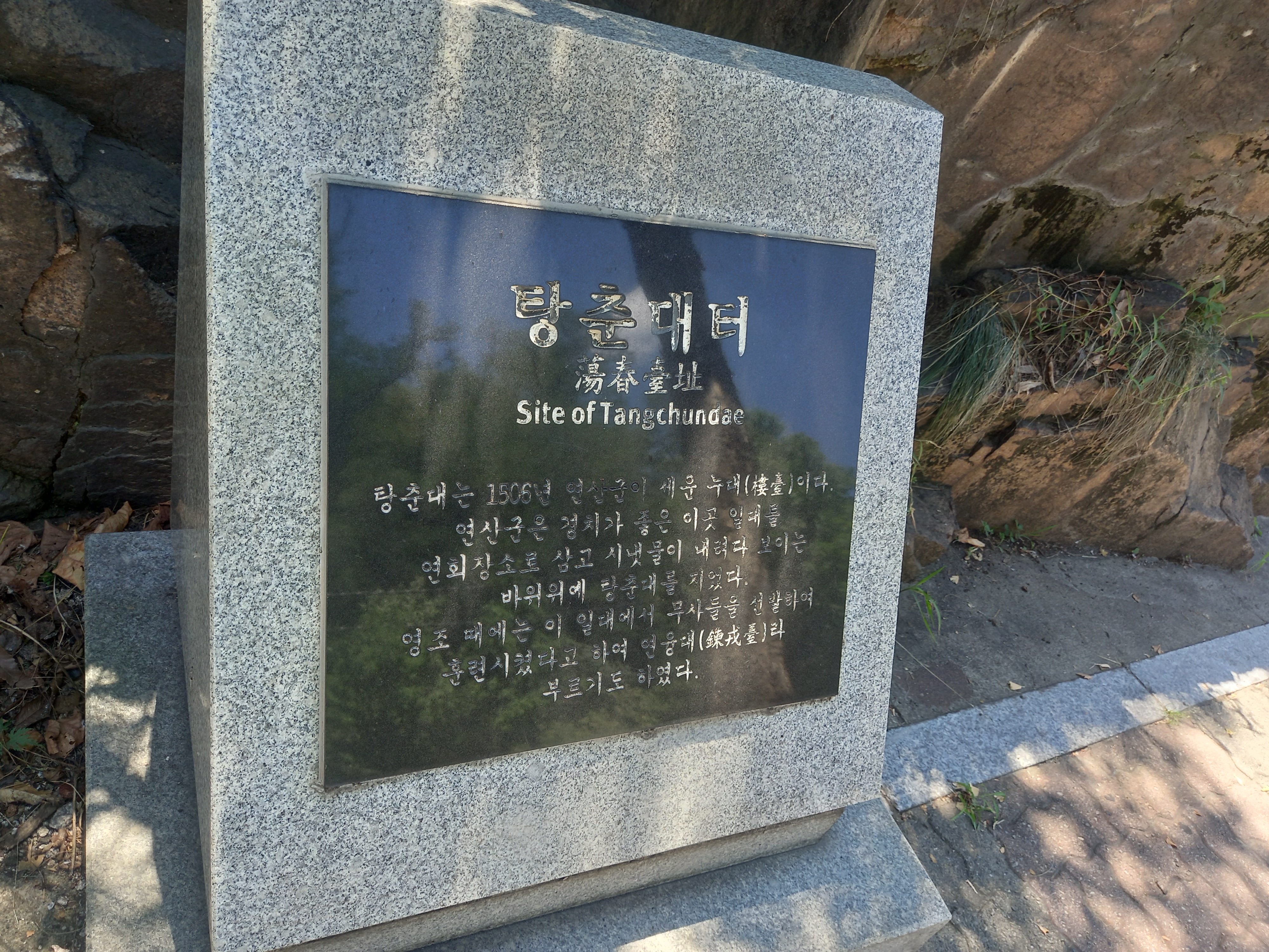 <백사실계곡에서 세검정 방면 도로변의 탕춘대터 안내 표지석>