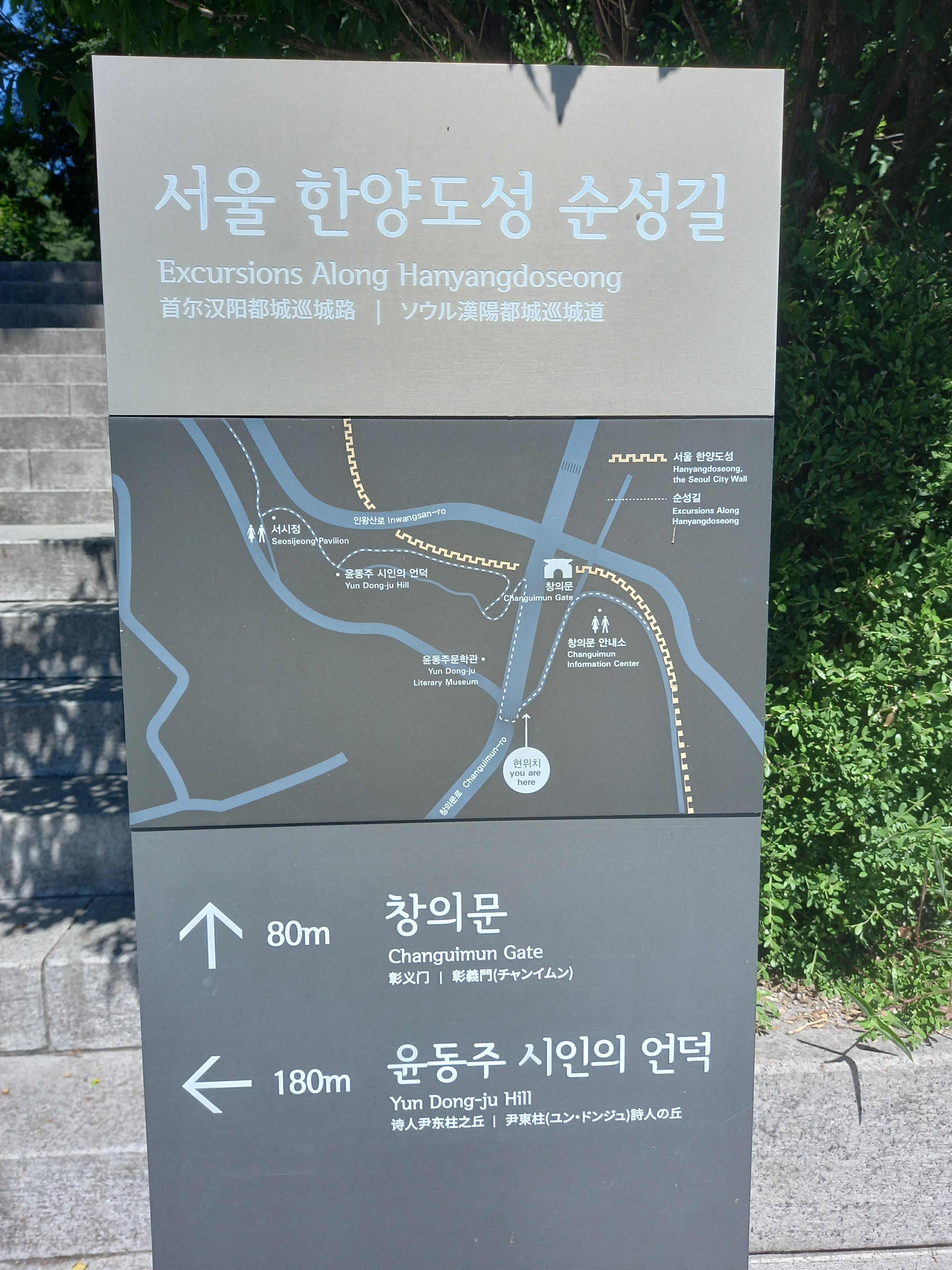 →창의문(10:33 / [우측] 창의문 안내소-50m / [후] 경복궁역-3Km)