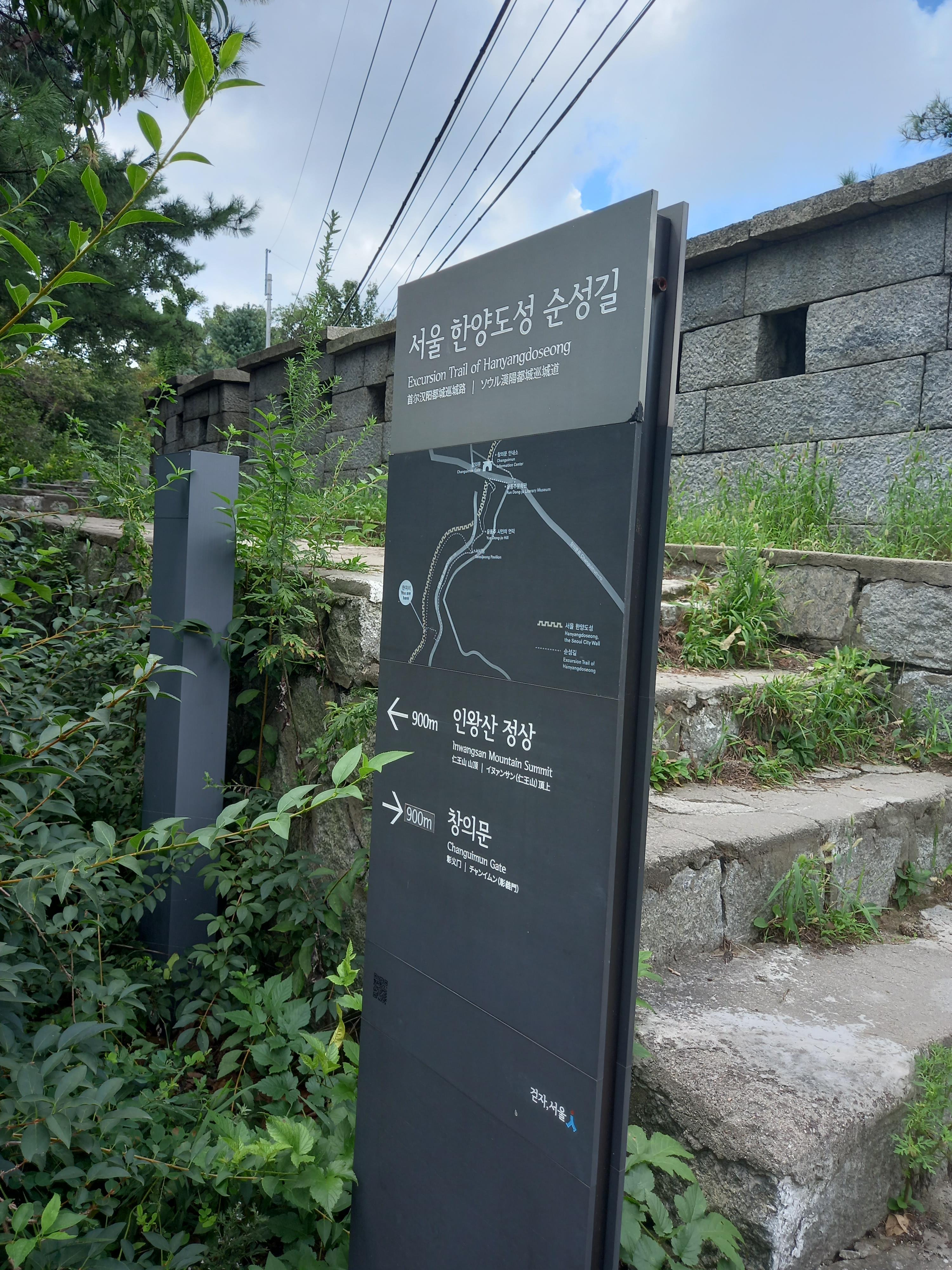 <한양도성 순성길 안내도와 인왕산 정상 방면 이정표>