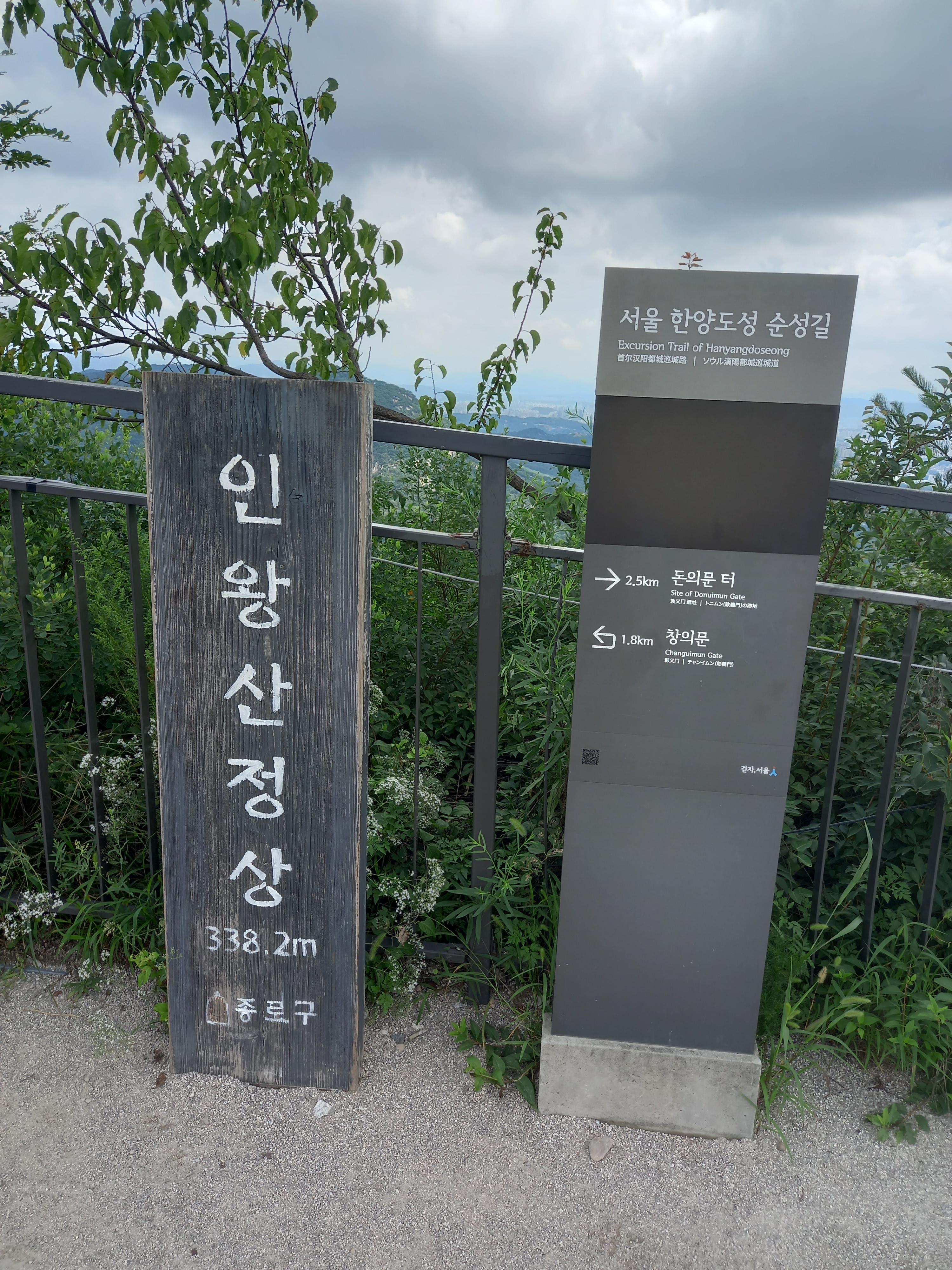 <인왕산 정상 표지목과 한양도성 순성길 이정표>