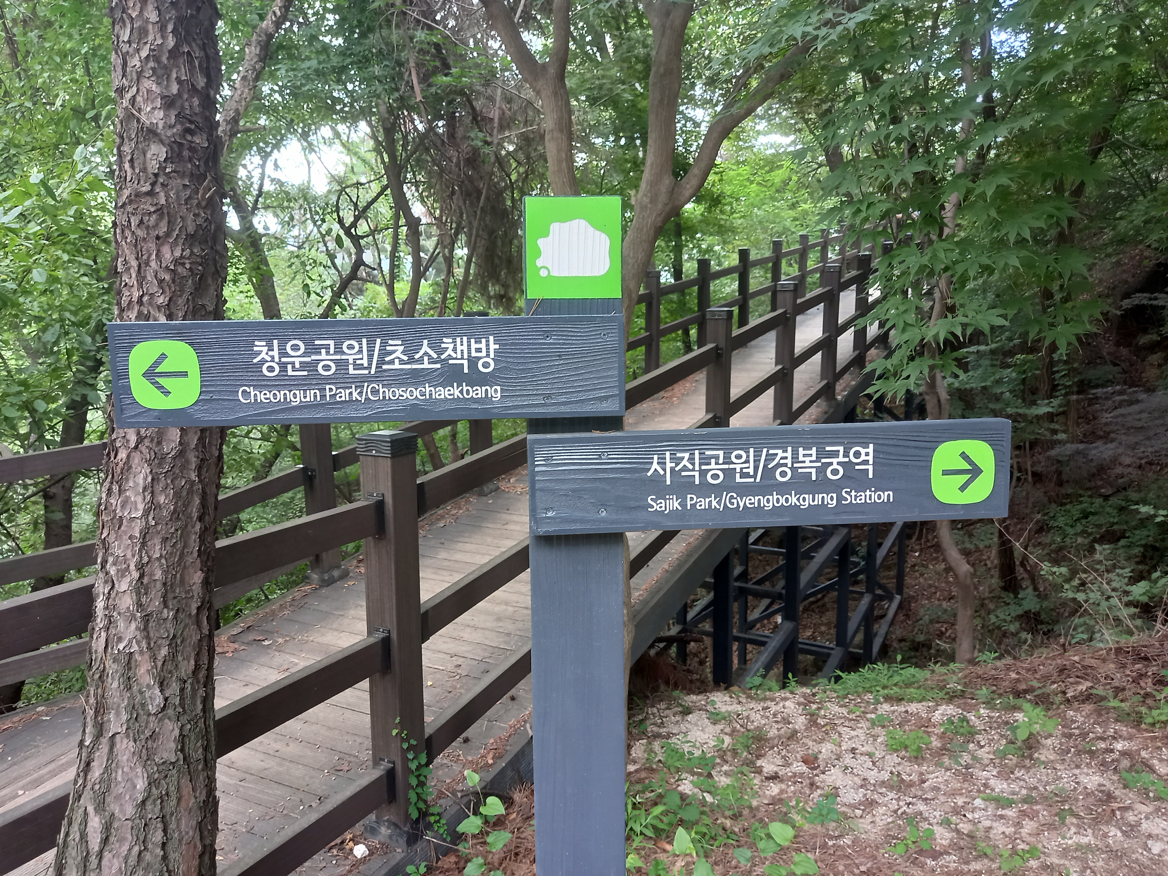 <청운공원과 초소책방에서 사직공원과 경복궁역 방면 이정표>