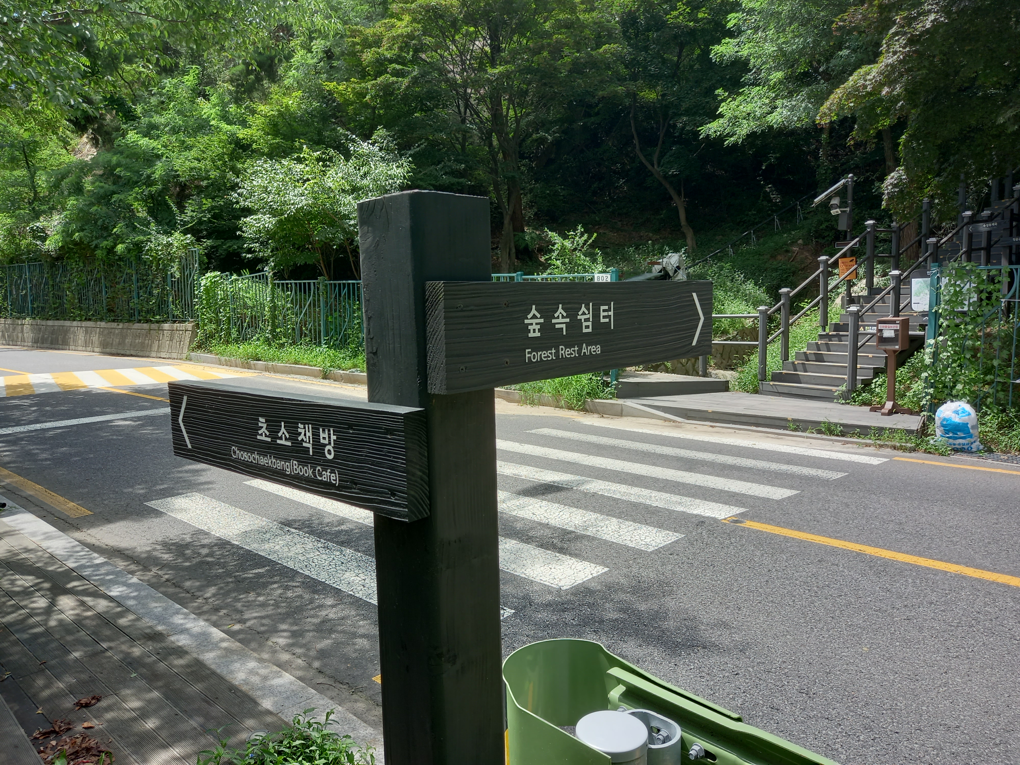 <초소책방과 숲속쉼터 방면 갈림길 이정표>