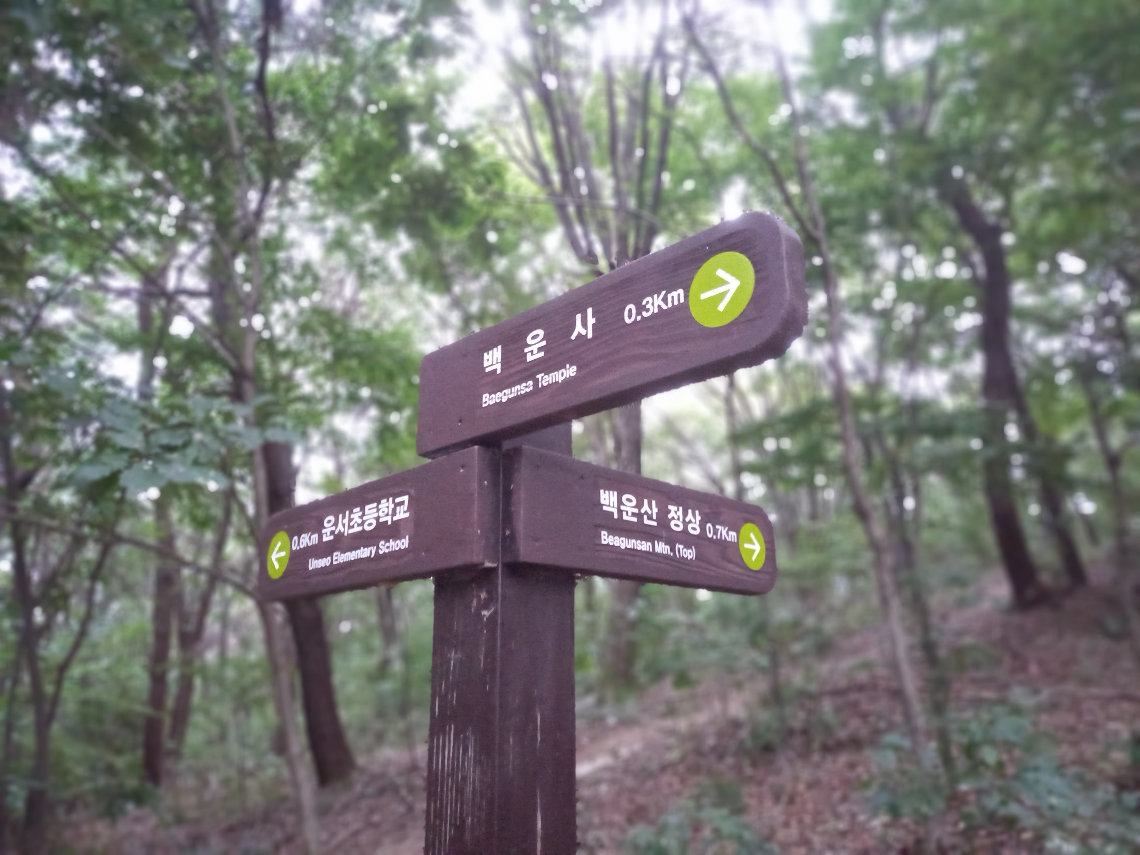 <백운사에서 운서초등학교와 국제물류고등학교 방면 갈림길 이정표>