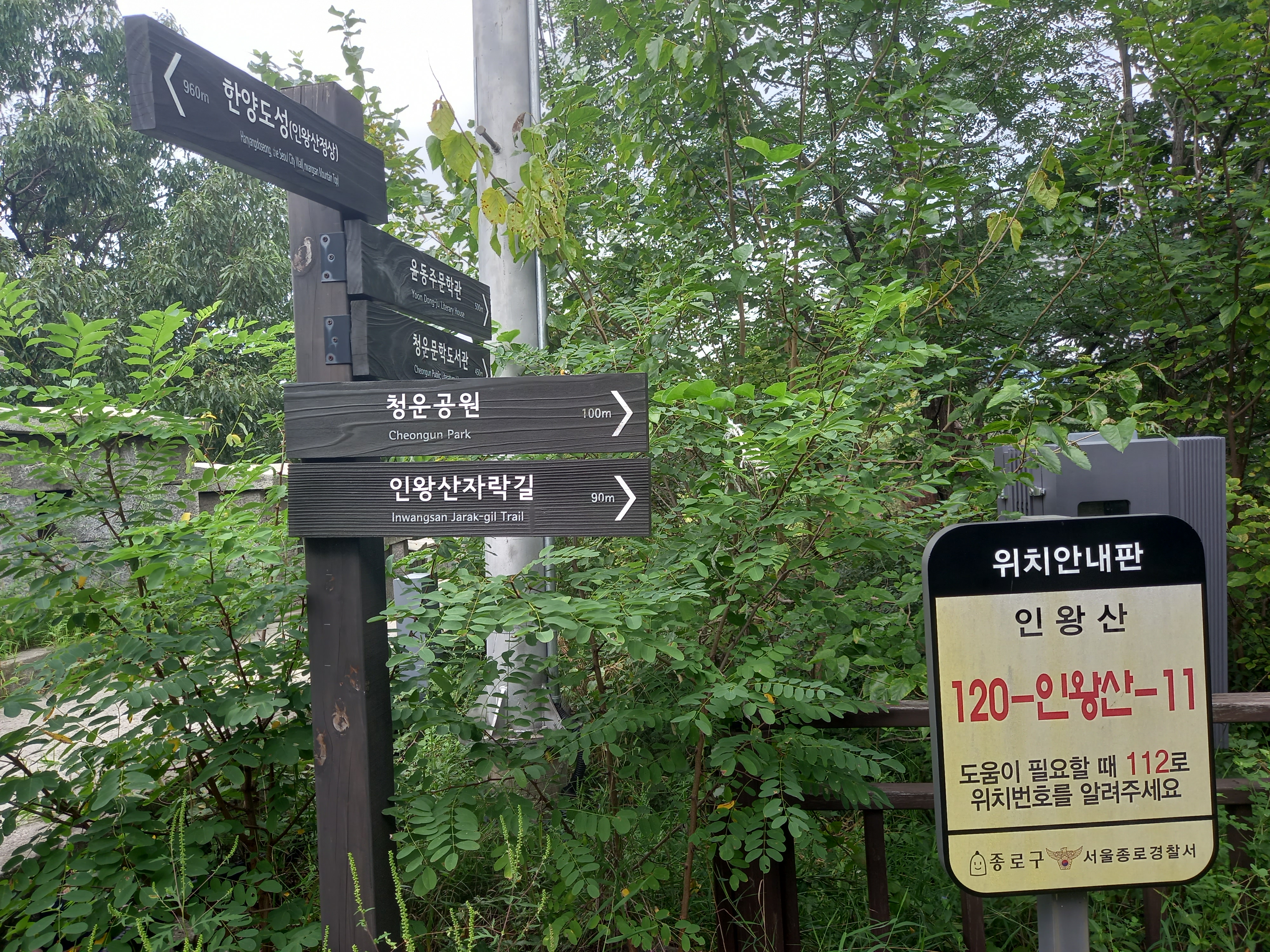 <청운공원에서 인왕배드민턴장과 청운 효자동 방면 이정표>