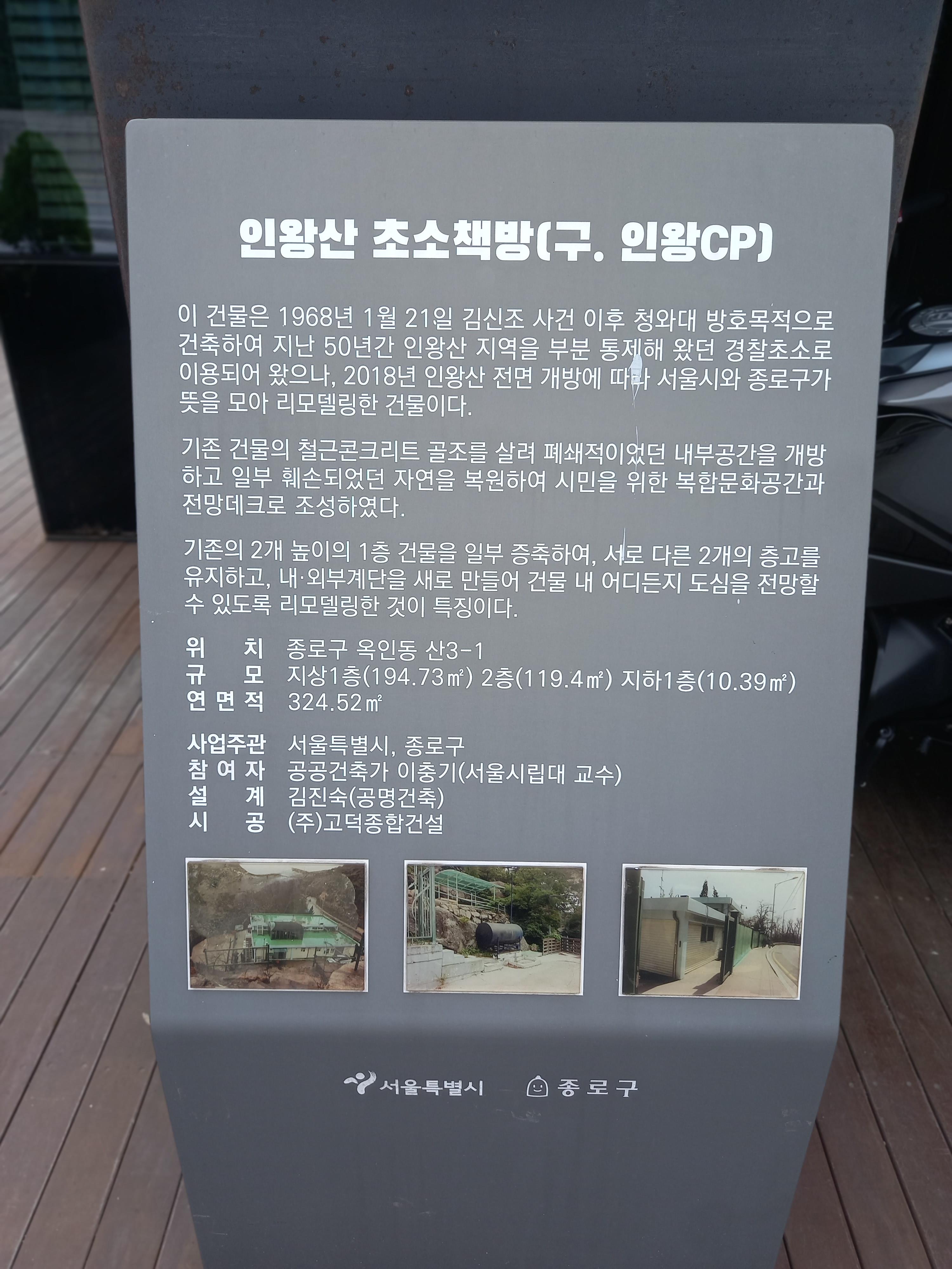 <인왕산 자락길에 위치한 인왕산 초소책방(구. 인왕CP) 안내문>