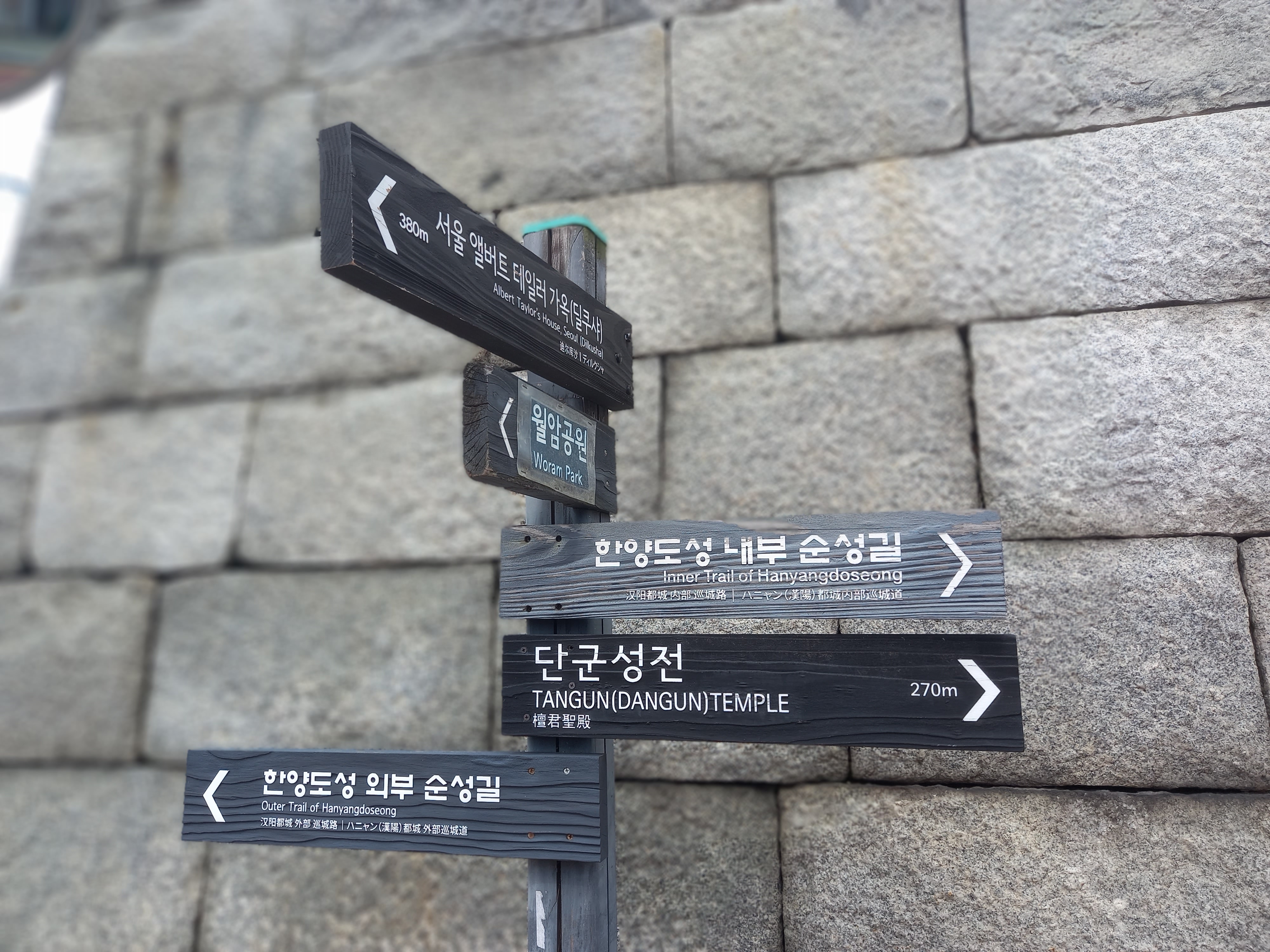 <한양도성 내부 순성길과 단군성전 방면 이정표>