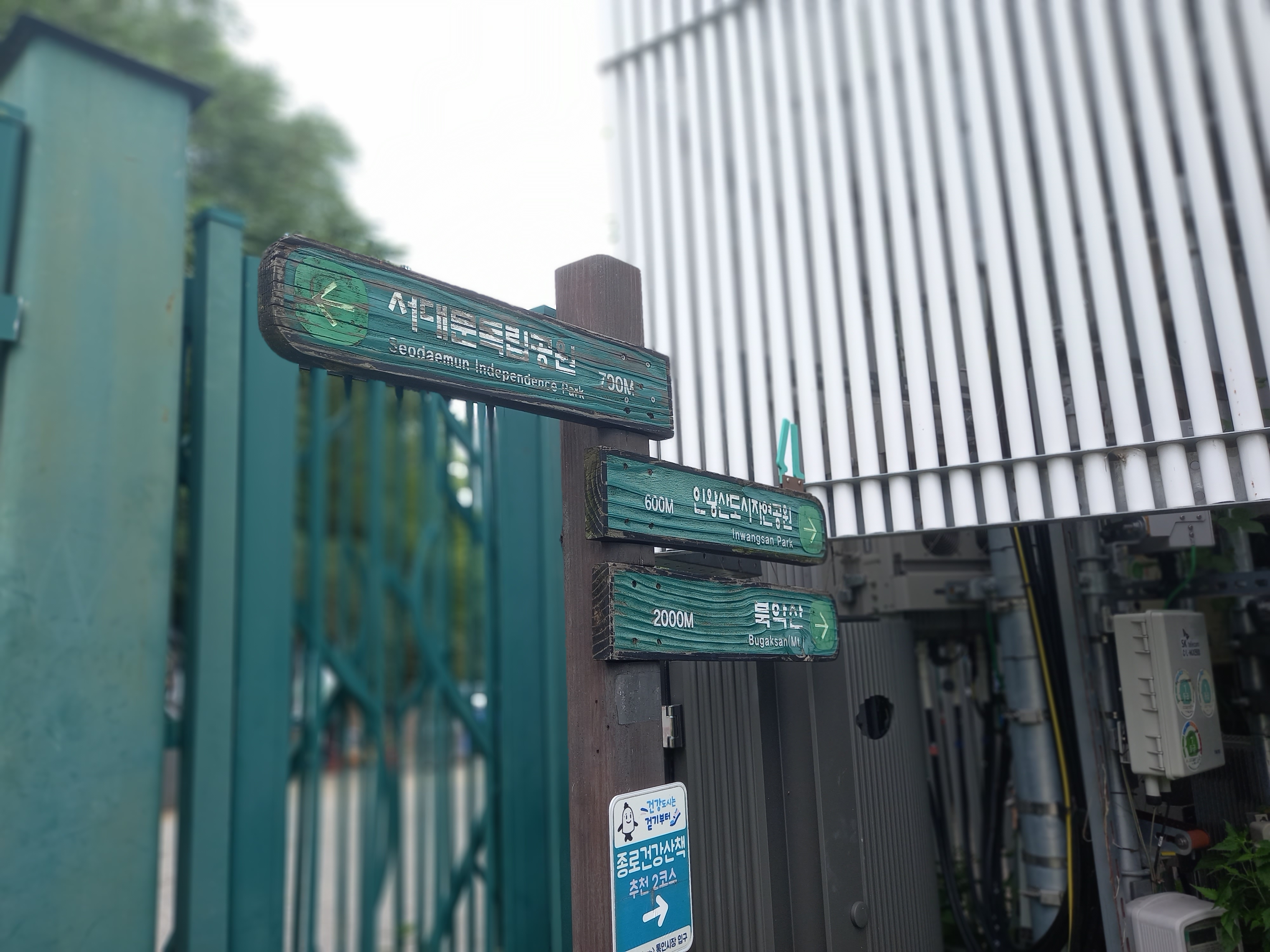 <인왕산 도시자연공원과 서대문 독립공원 방면 갈림길 이정표>