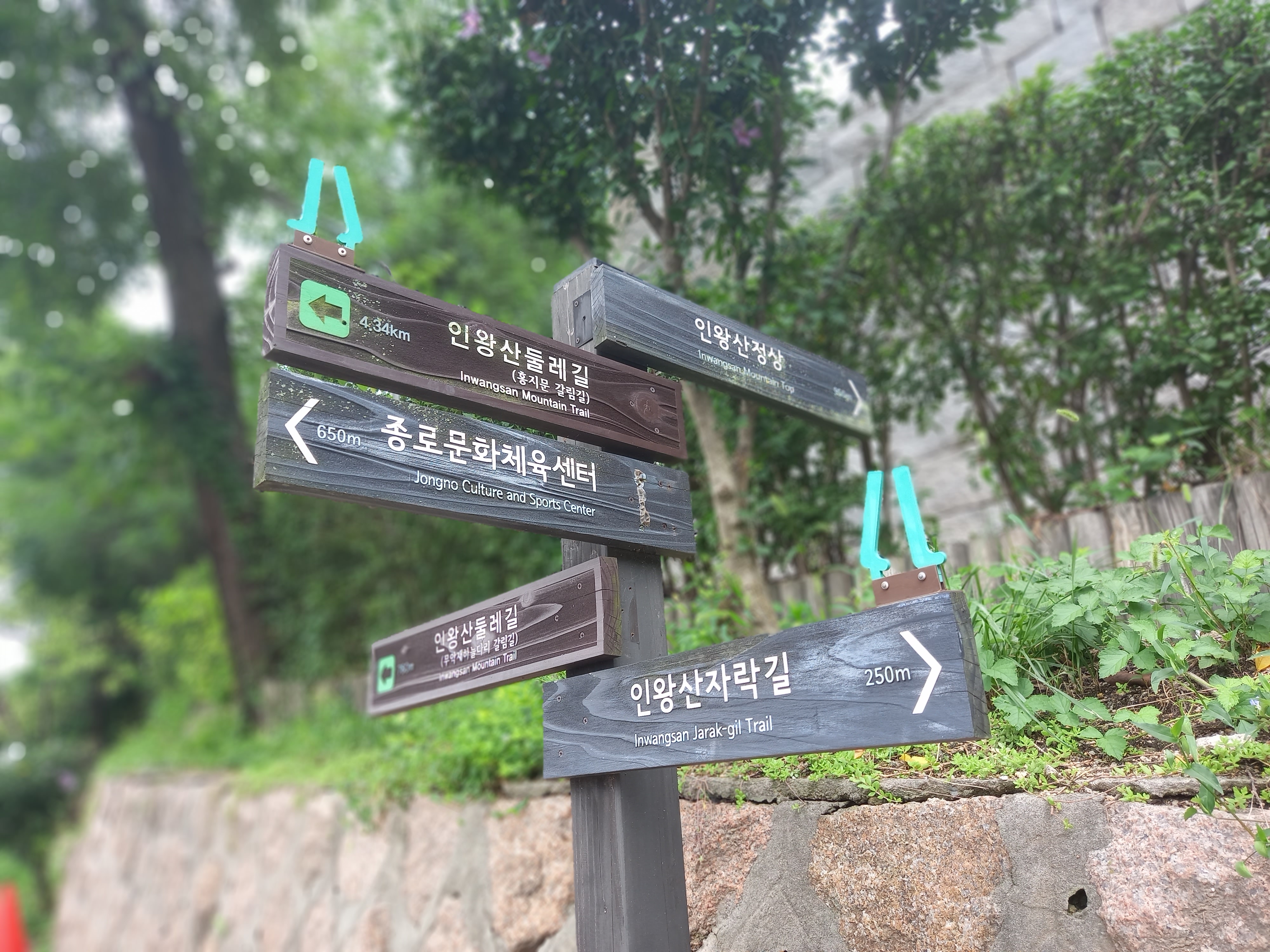 <사직공원 인왕산 종로문화체육센터 방면 이정표>