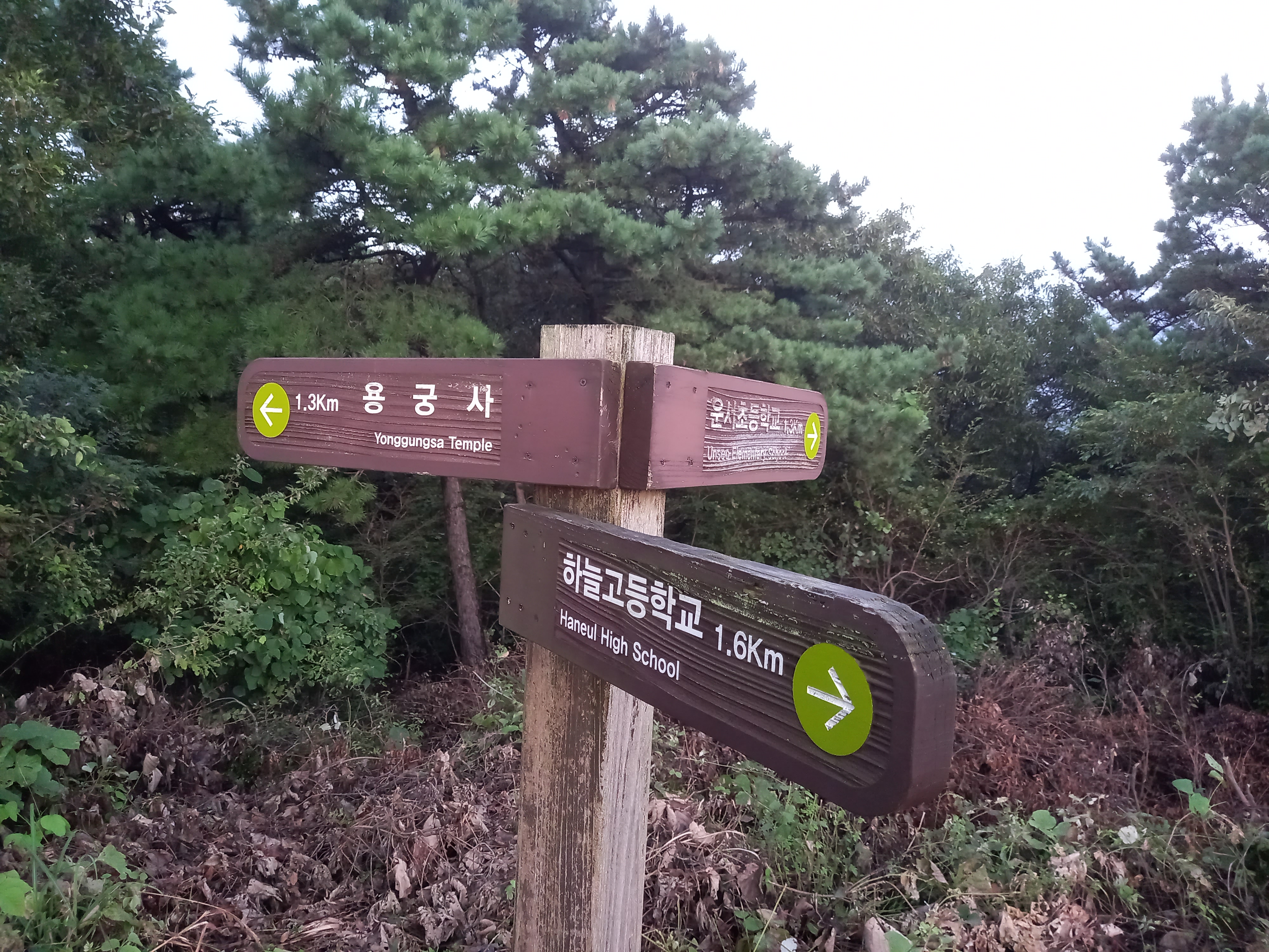 <운서초등학교에서 하늘고등학교와 용궁사 방면 갈림길 이정표>
