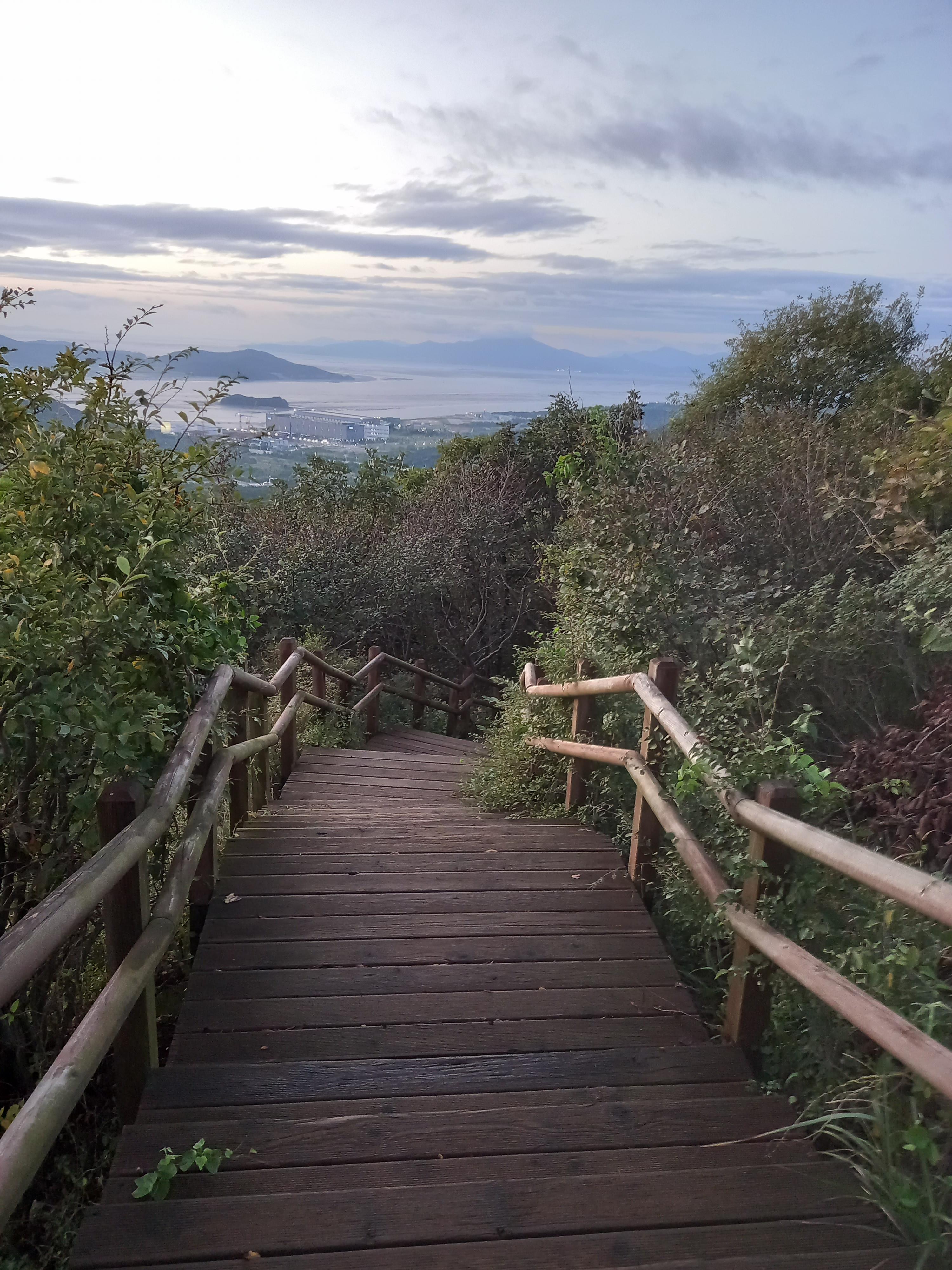 <백운산 정상에서 하늘고등학교 방면 하산로 계단길>