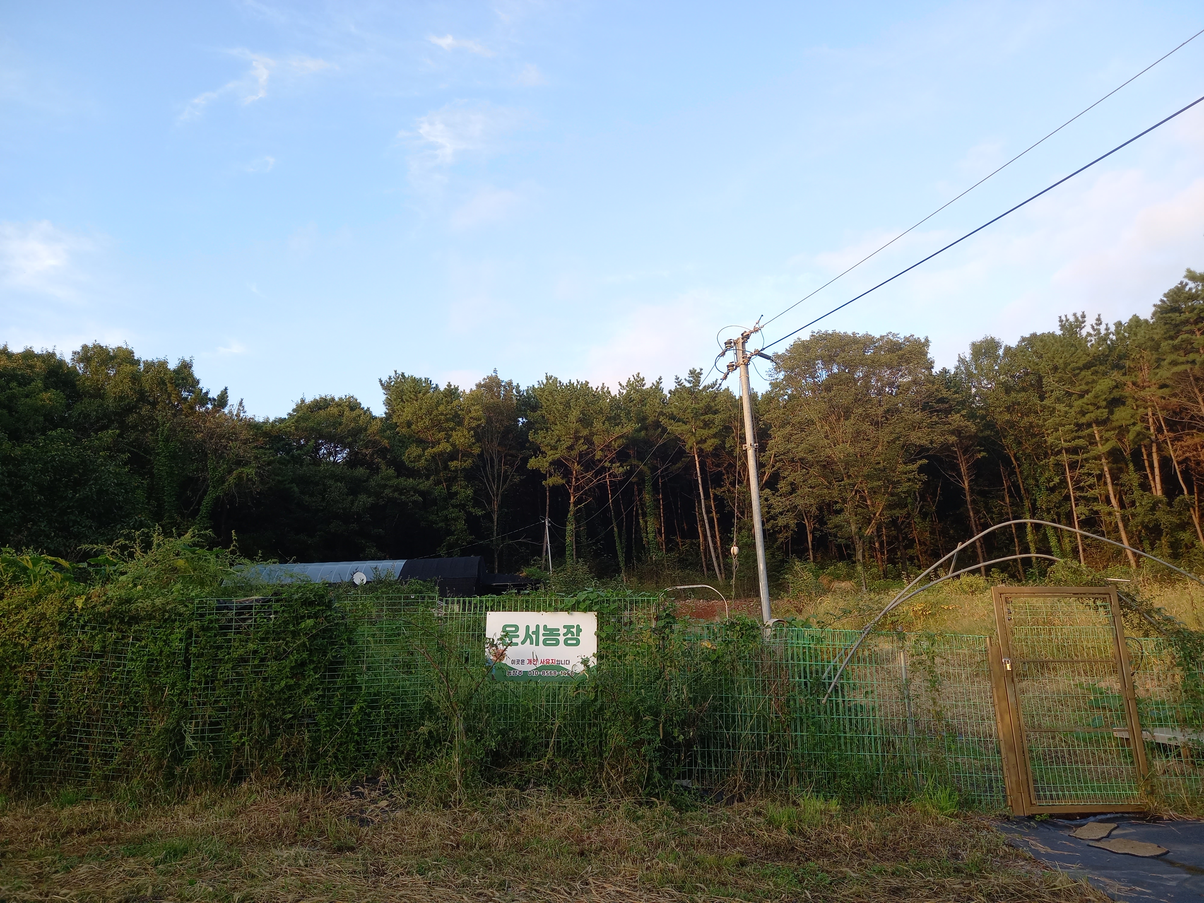 <운서초등학교에서 백운산 정상 방면 등산로의 운서농장 전경>