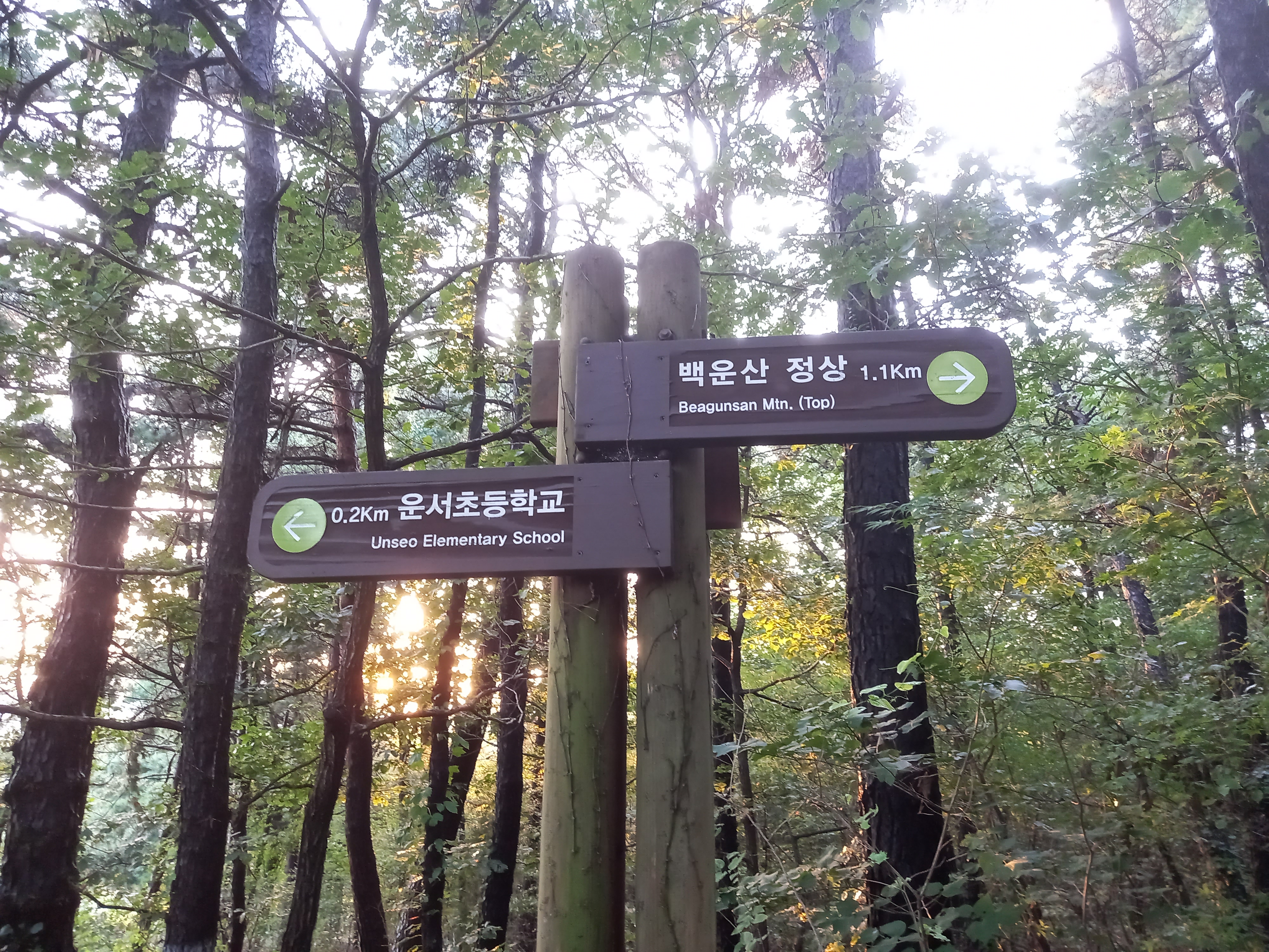 <운서초등학교에서 백운산 정상 방면 이정표>