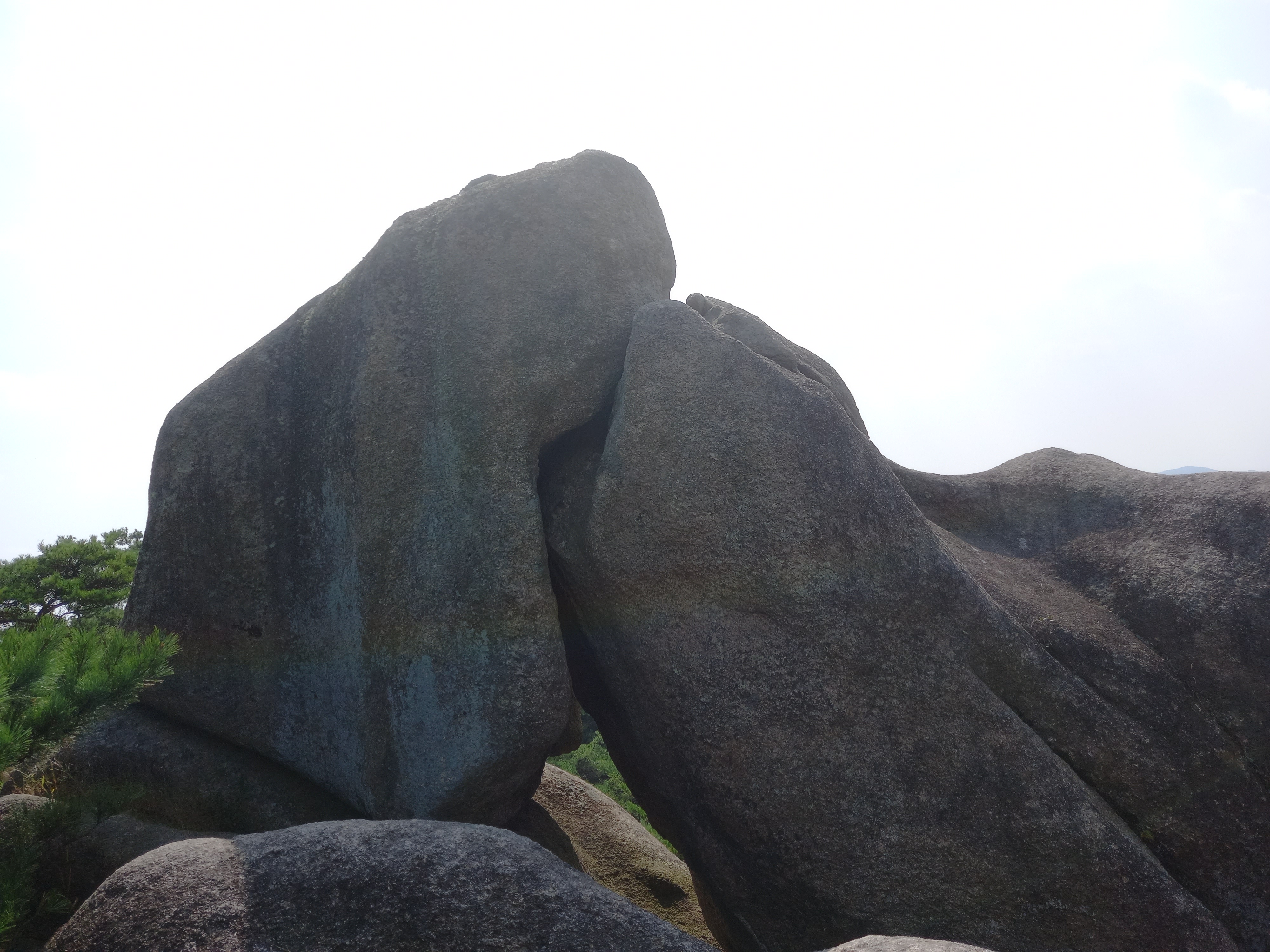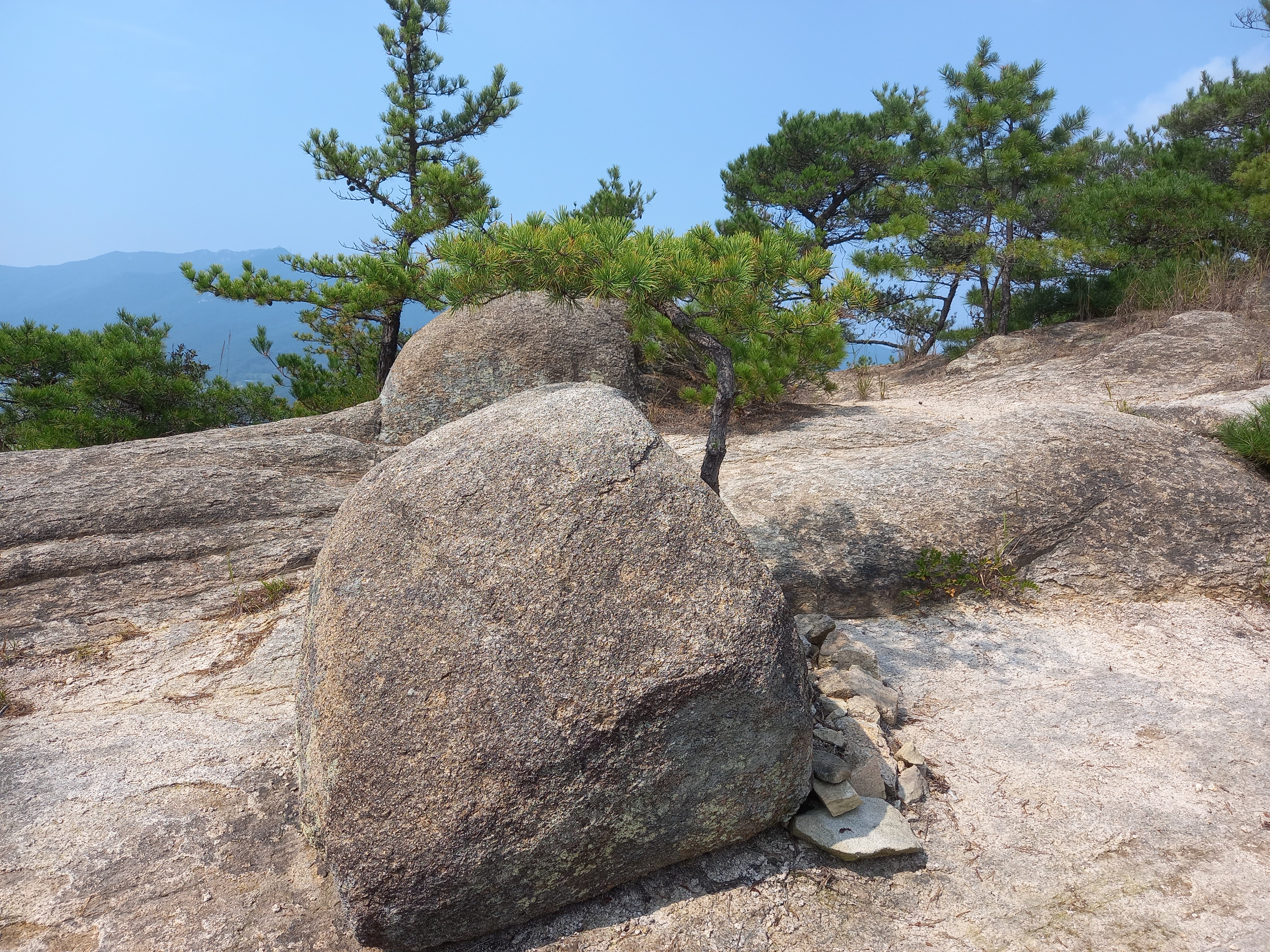 <수암산 정상에서 용봉산 방면 능선의 정자 옆 기암괴석>