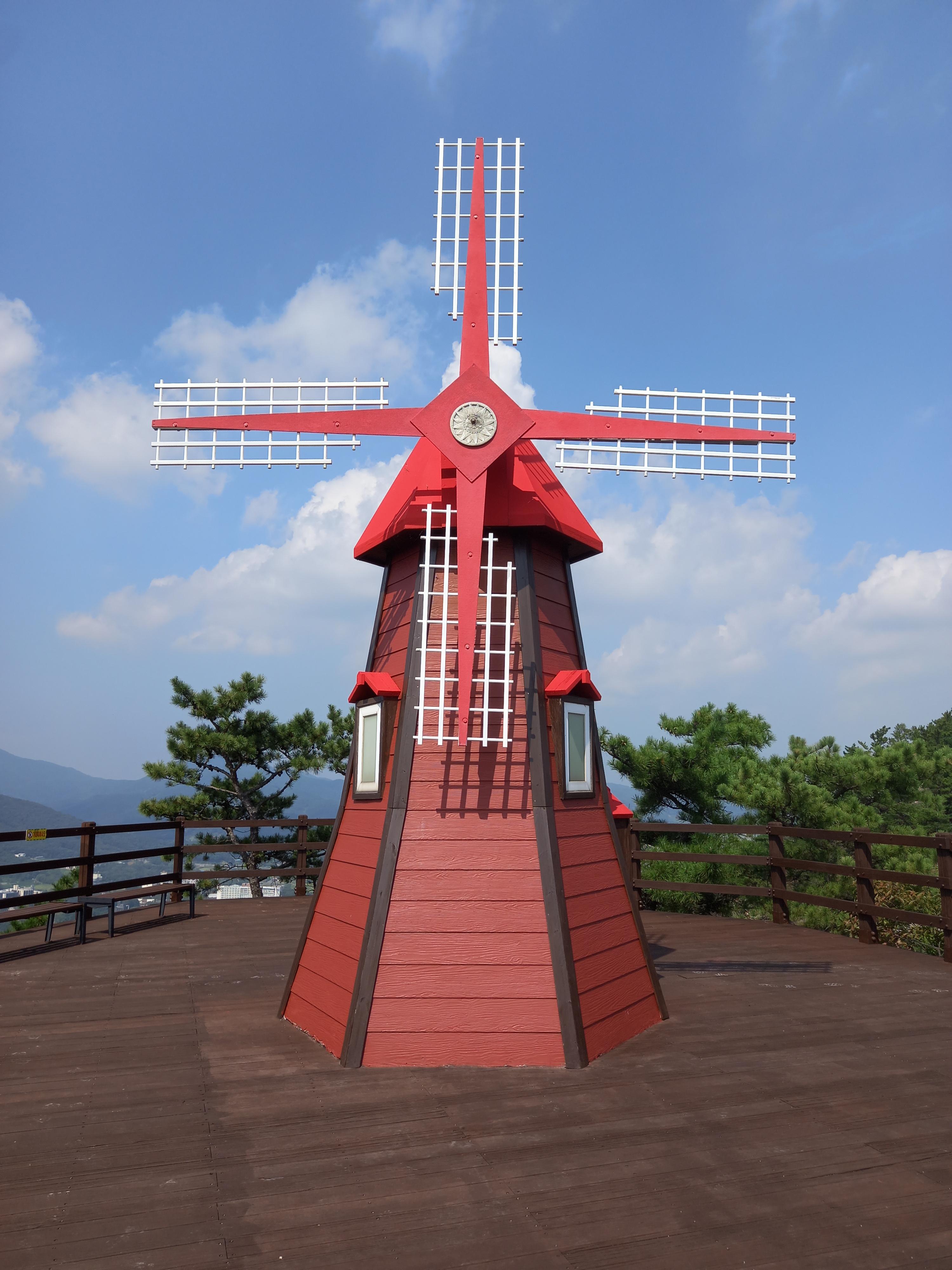 <수암산 정상에서 할매바위 방면 능선의 풍차 조형물>