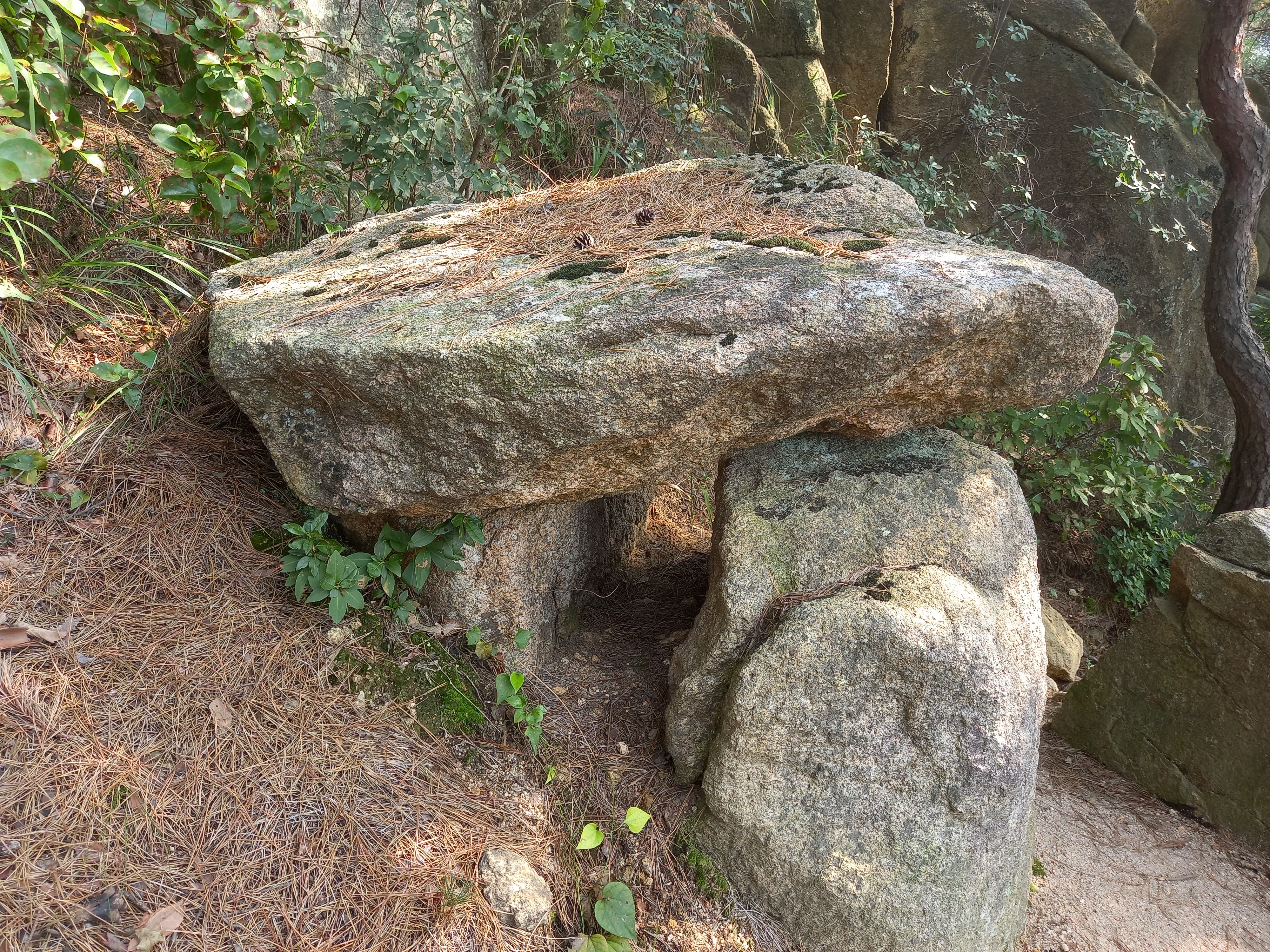 <수암산 정상에서 용봉산 방면 능선의 고인돌 모양 바위들>