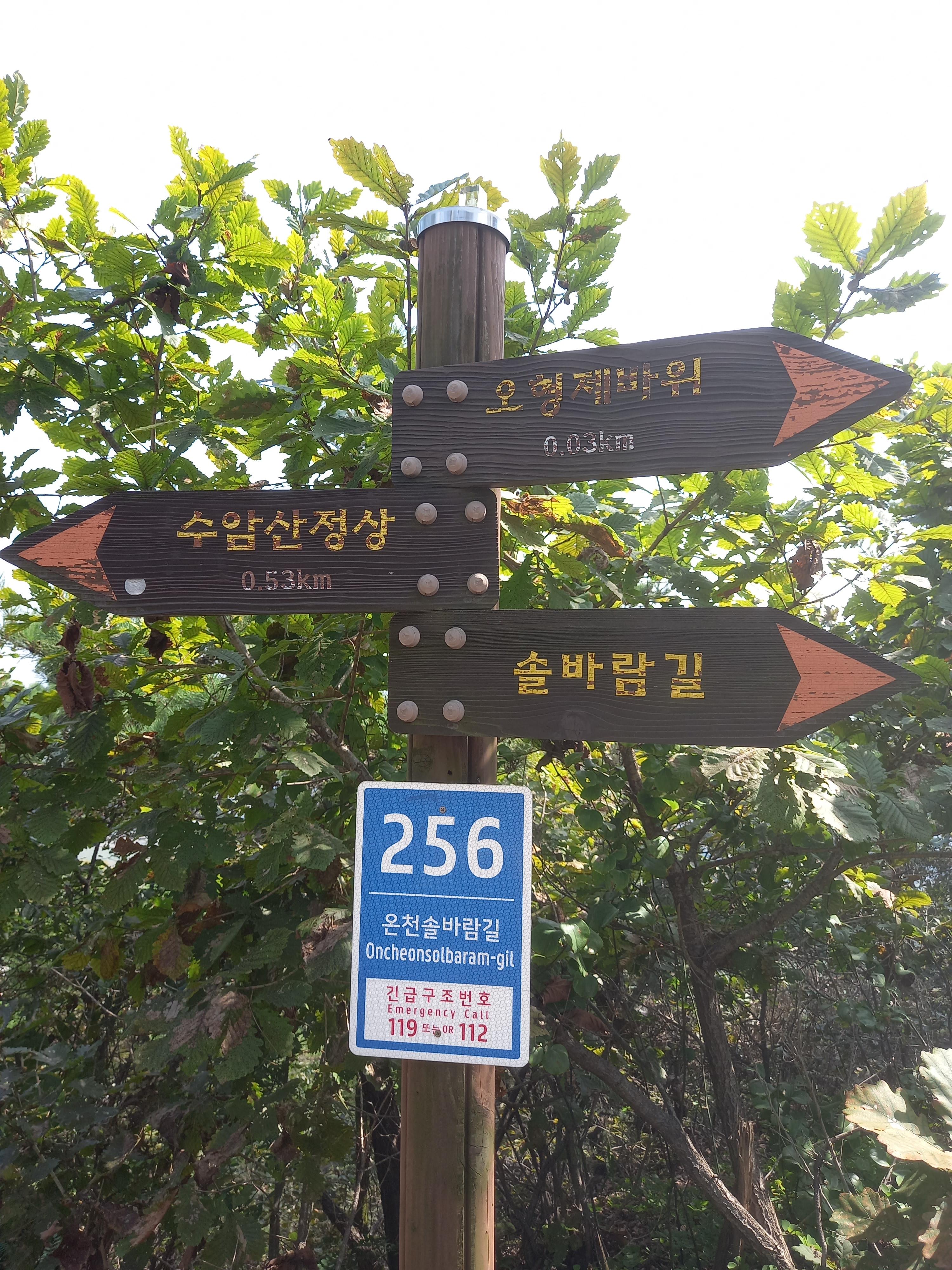 <오형제바위에서 수암산 정상 방면 이정표>