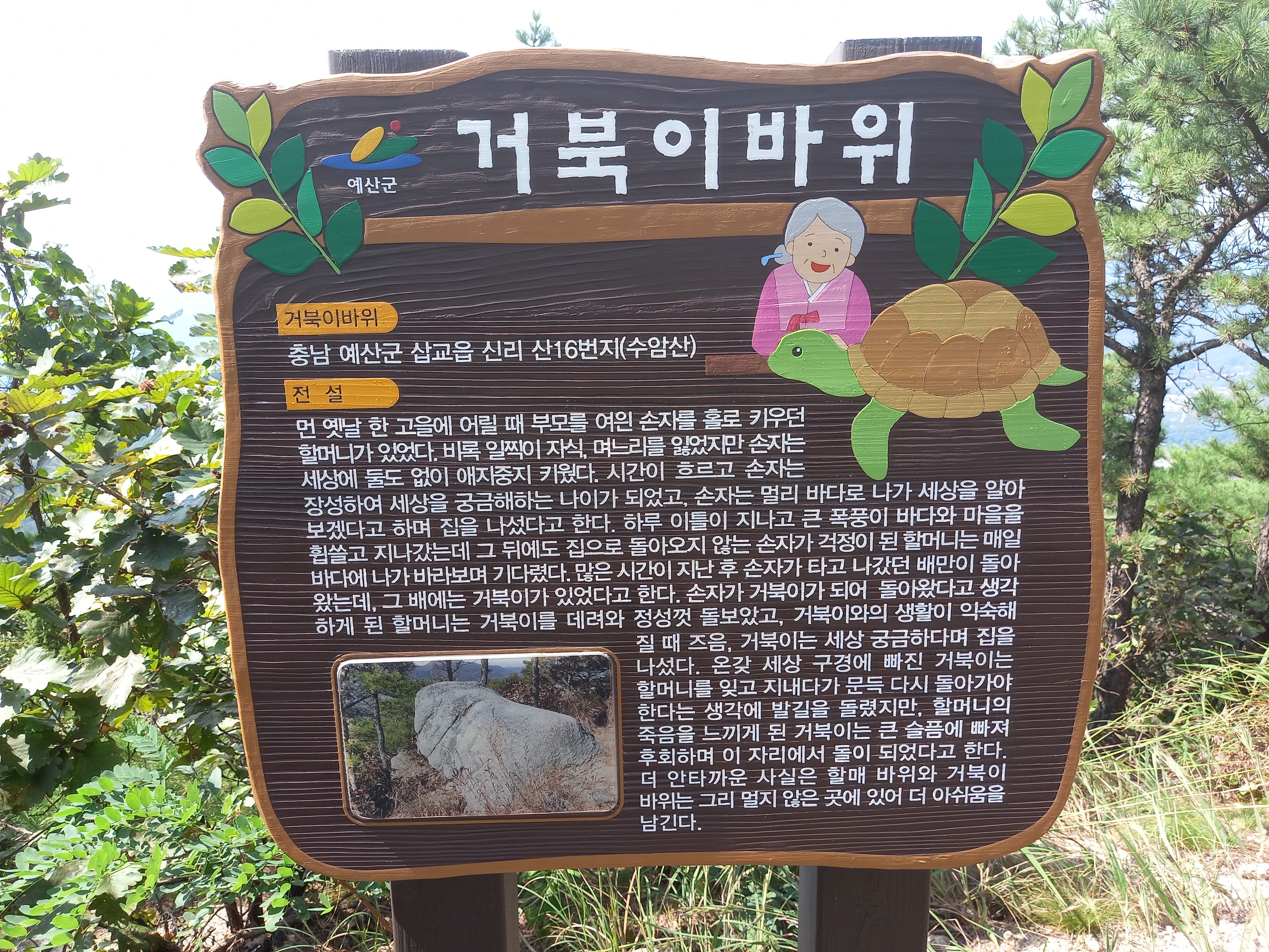 <수암산 정상 표지석 옆의 거북이바위 안내문>