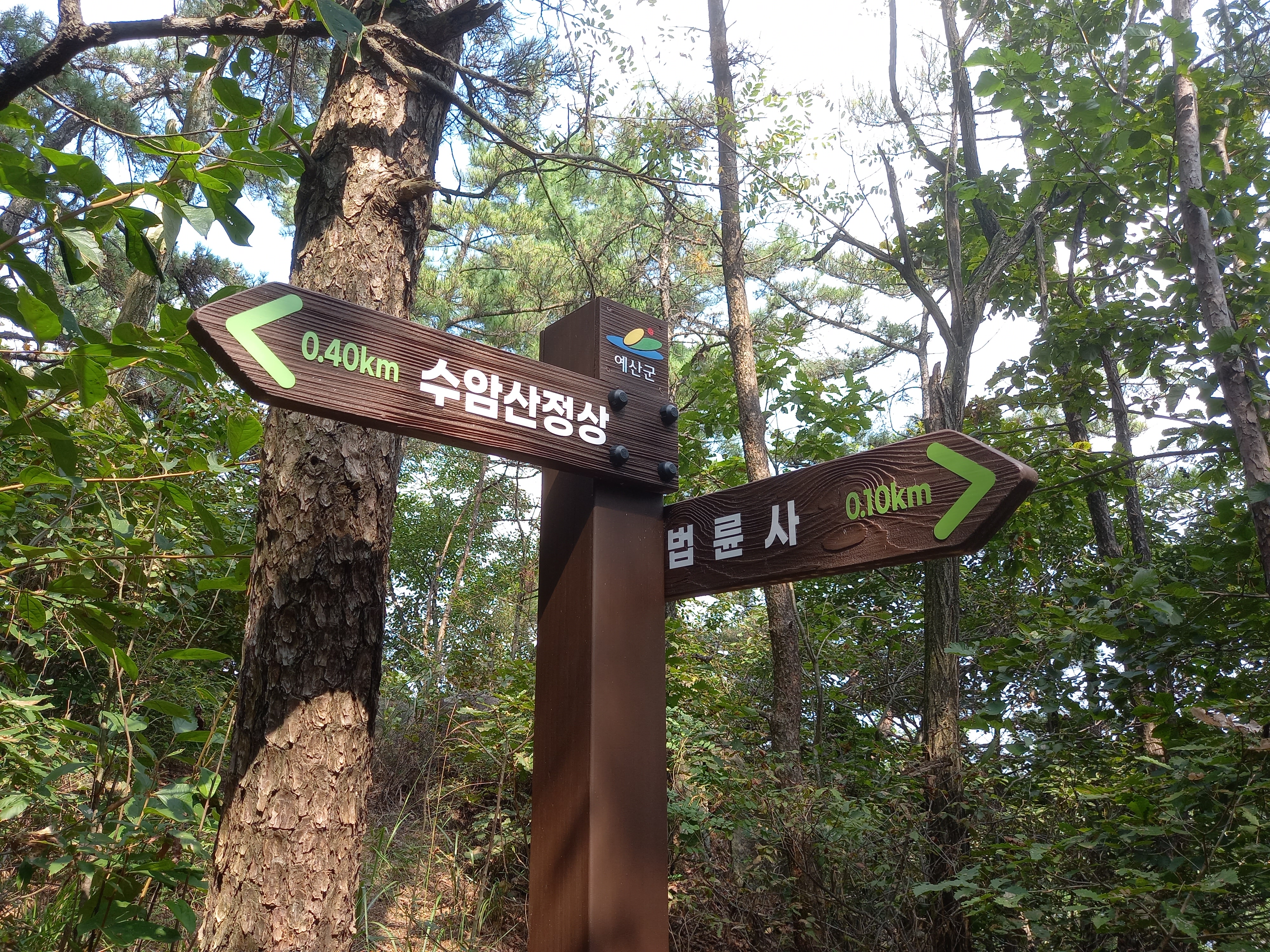 <법륜사에서 수암산 정상 방면 이정표>