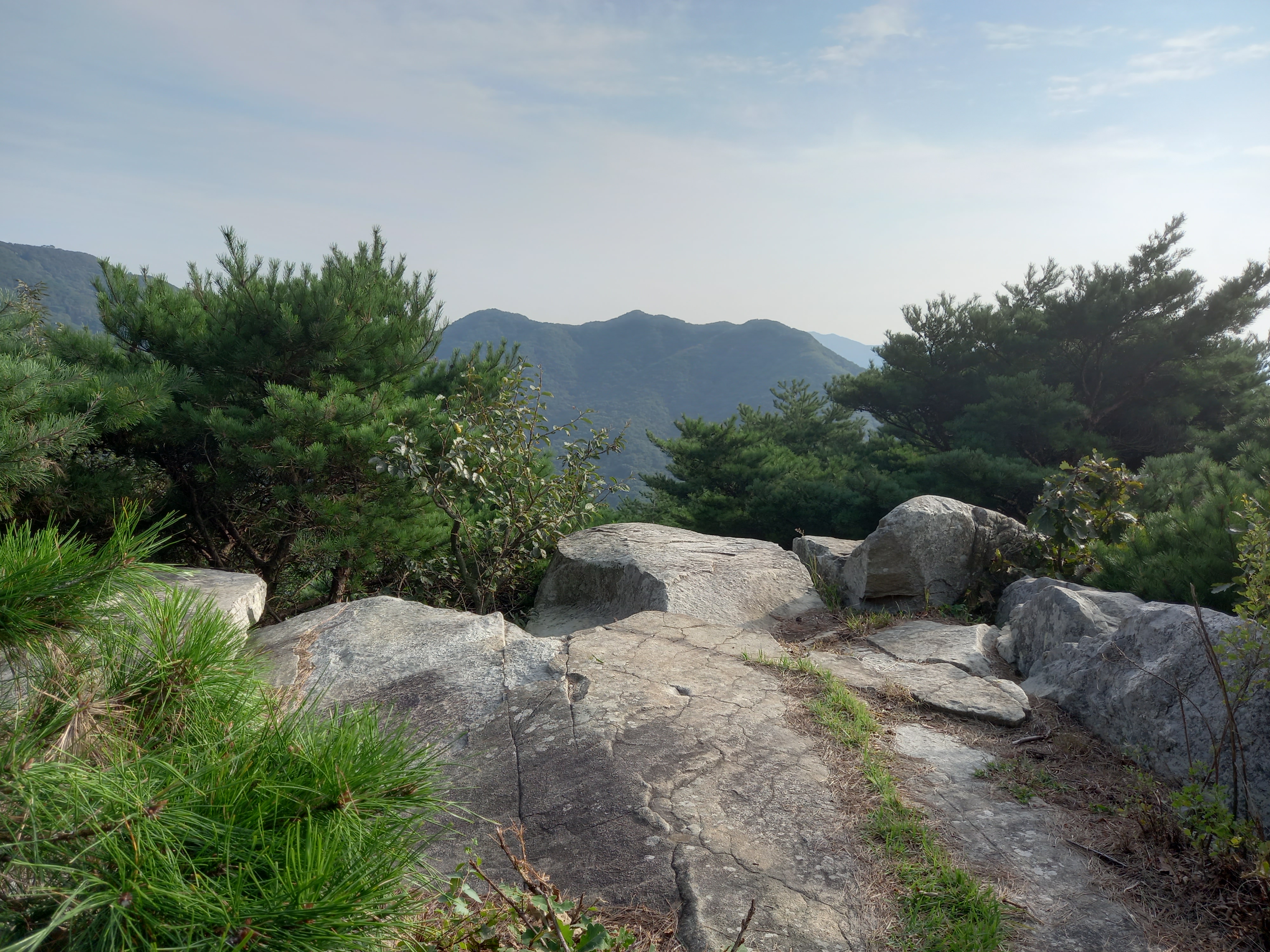 <일락산 정상에서 일락사 방면 하산로의 바위 전망대>
