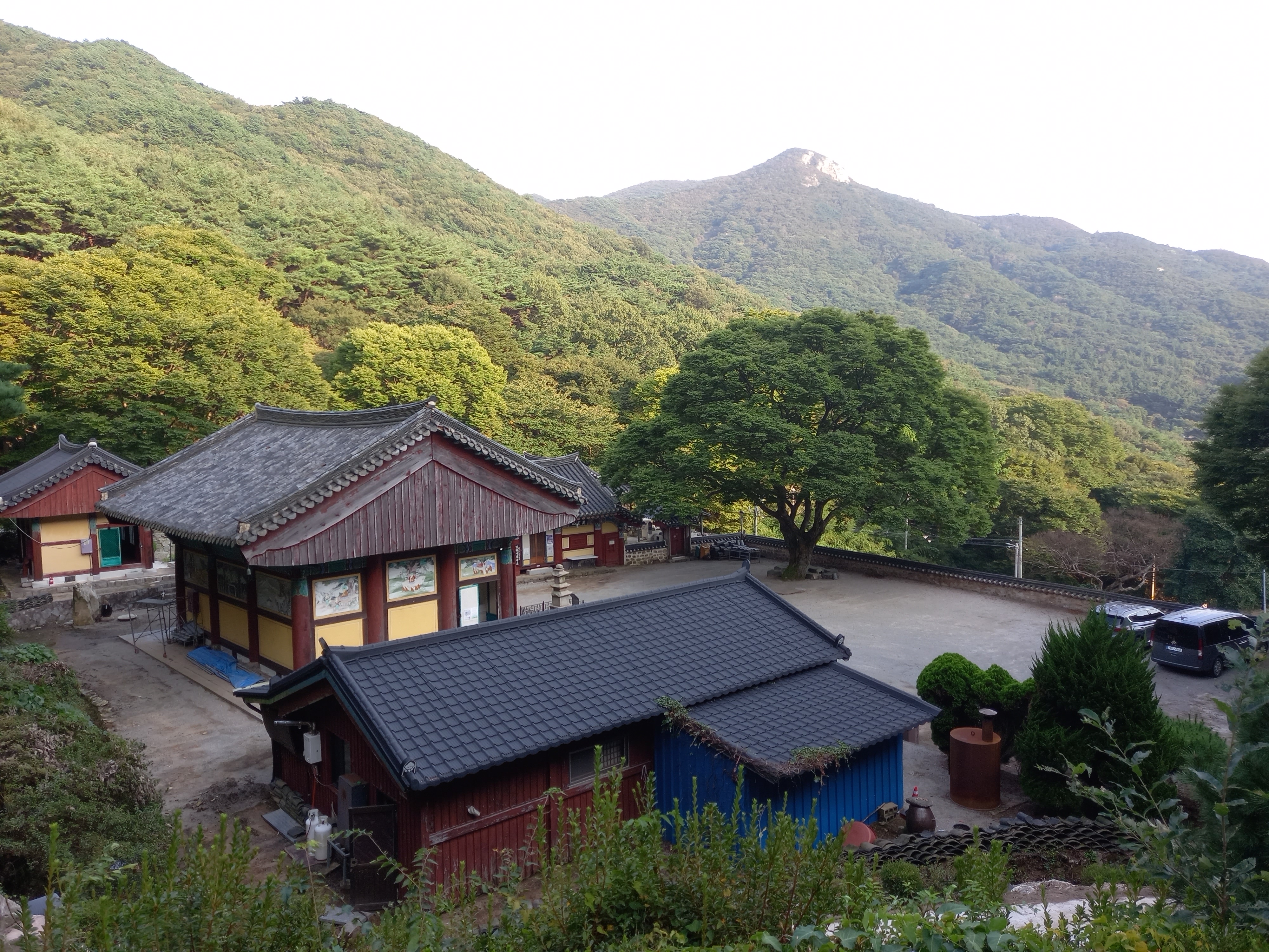 <주차장에서 바라본 일락사와 일락산 정상 방면 전경>