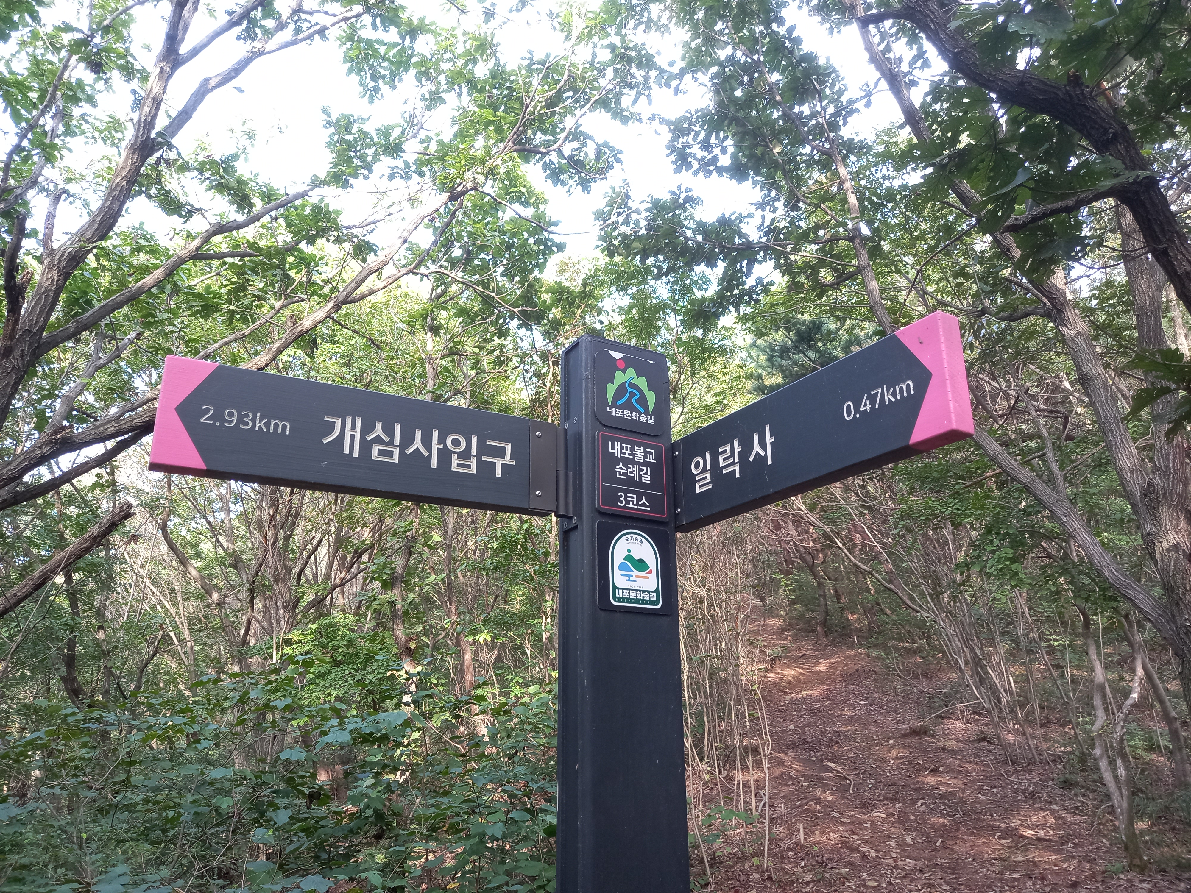 <일락사에서 개심사 입구 방면 이정표>