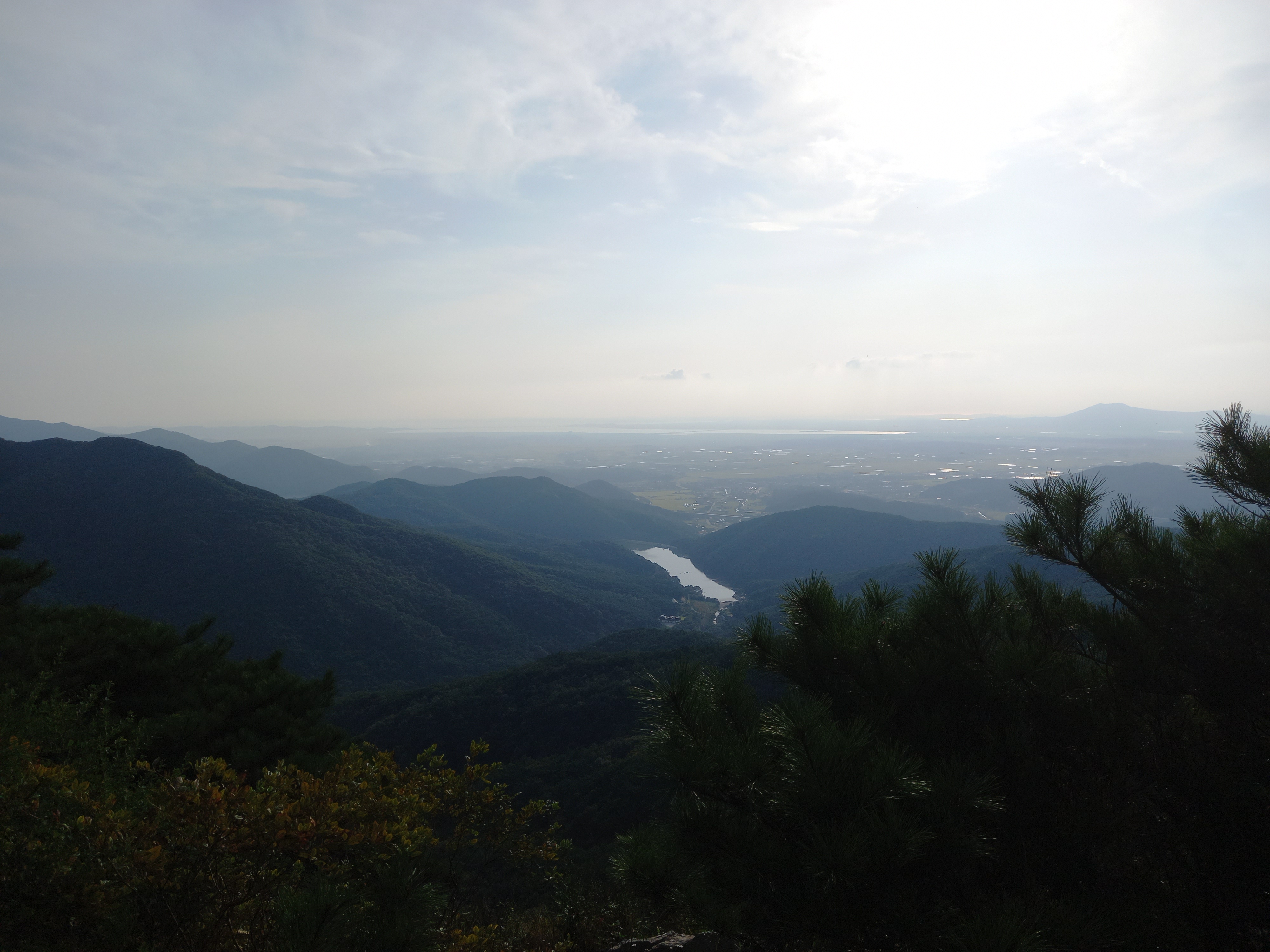 <일락산 정상에서 일락사 방면 하산로에서 바라본 황낙저수지 방면 전경>