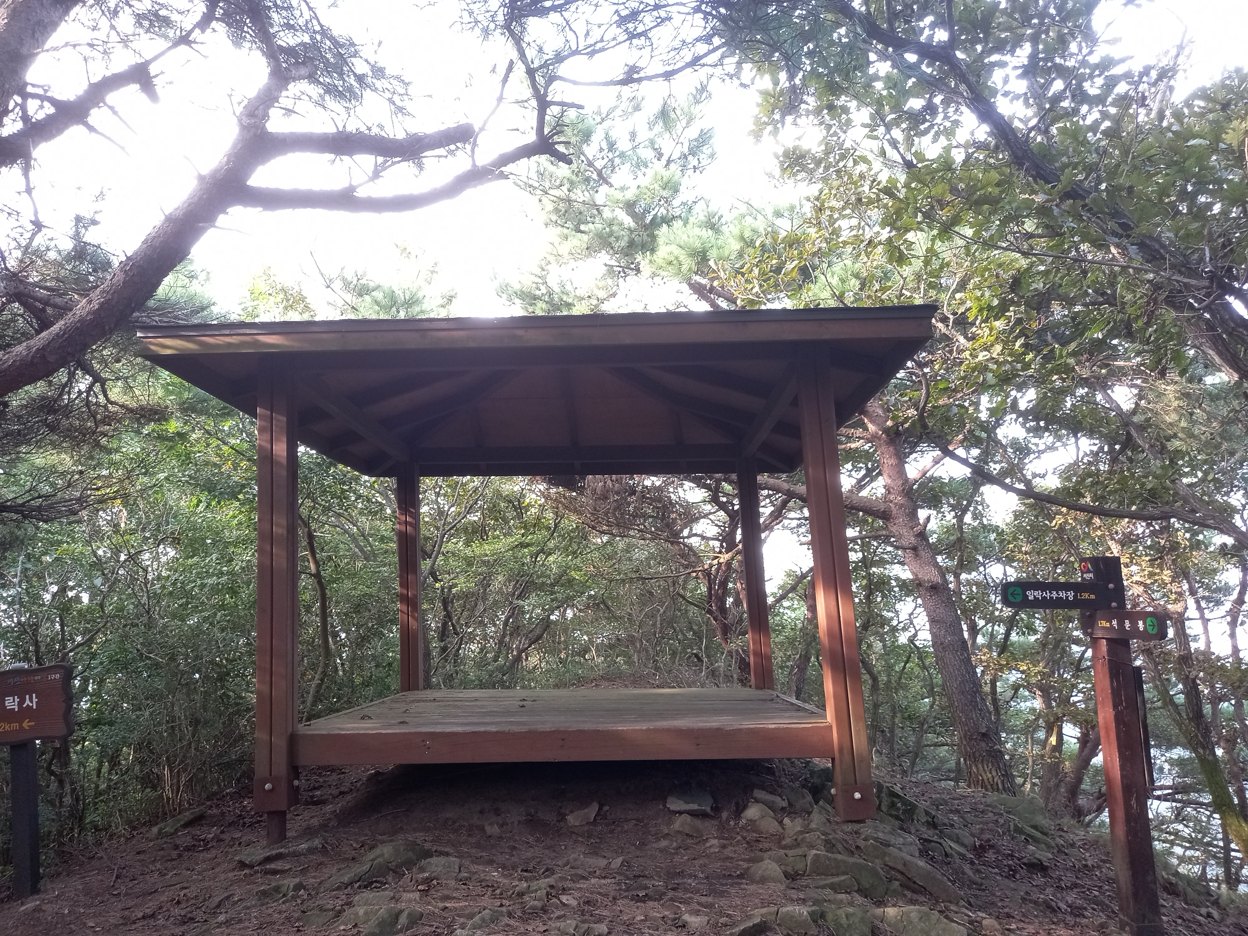 <일락산 정상의 쉼터와 이정표>