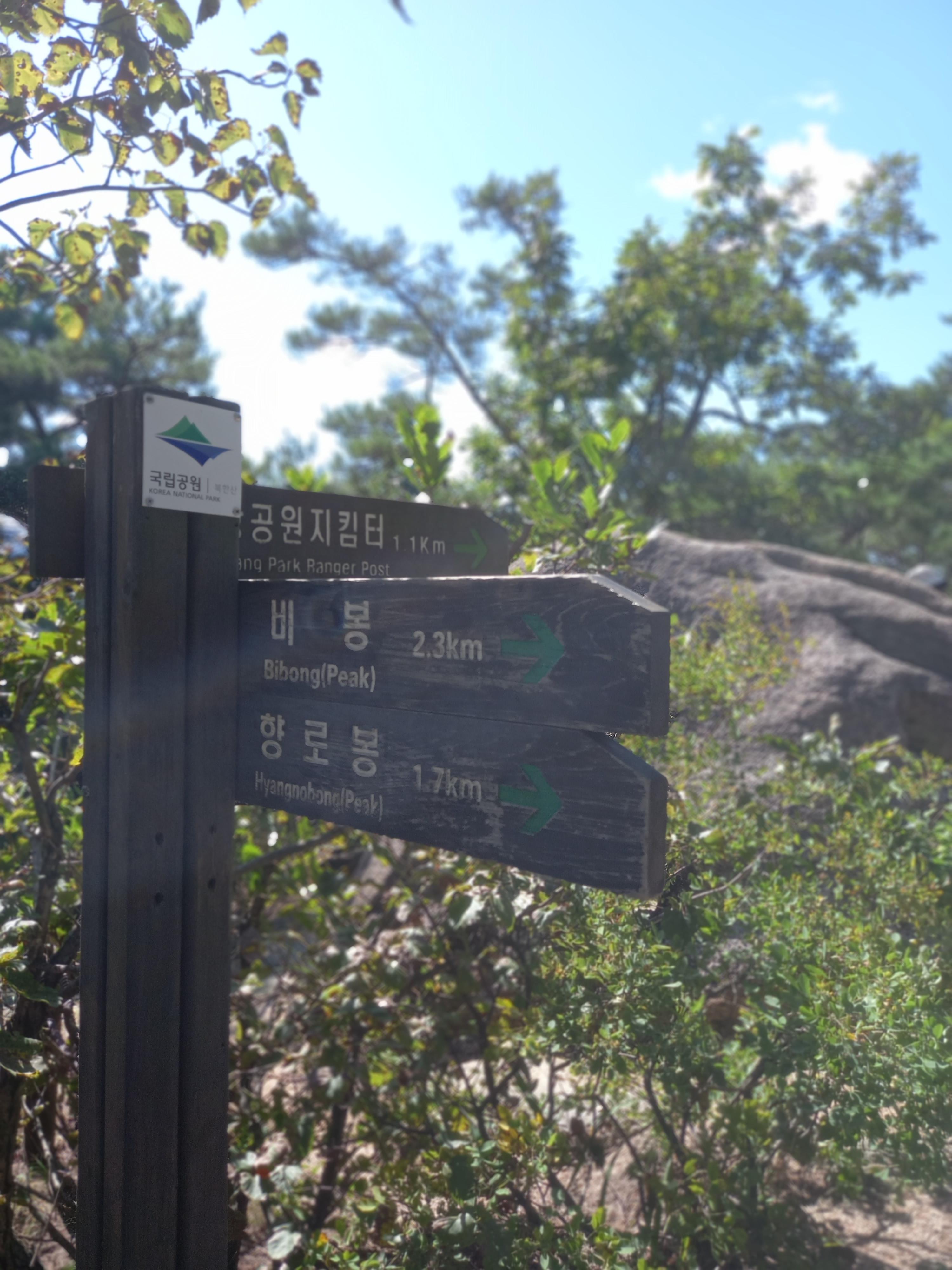 <향로봉과 비봉 대남문에서 구기동과 상명대학교 방면 갈림길 이정표>