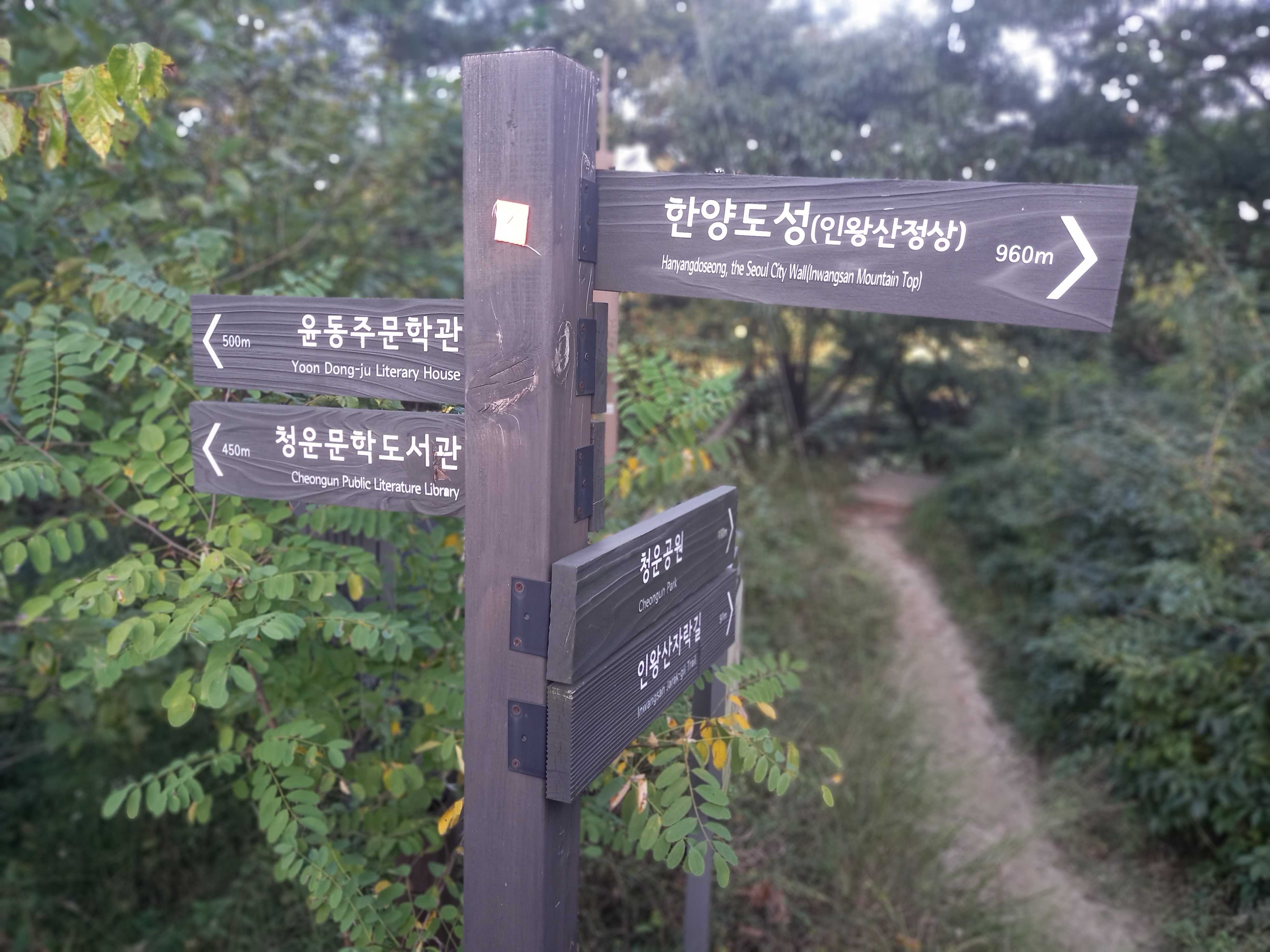 <청운문학도서관에서 인왕산 자락길과 시인의 언덕 방면 이정표>