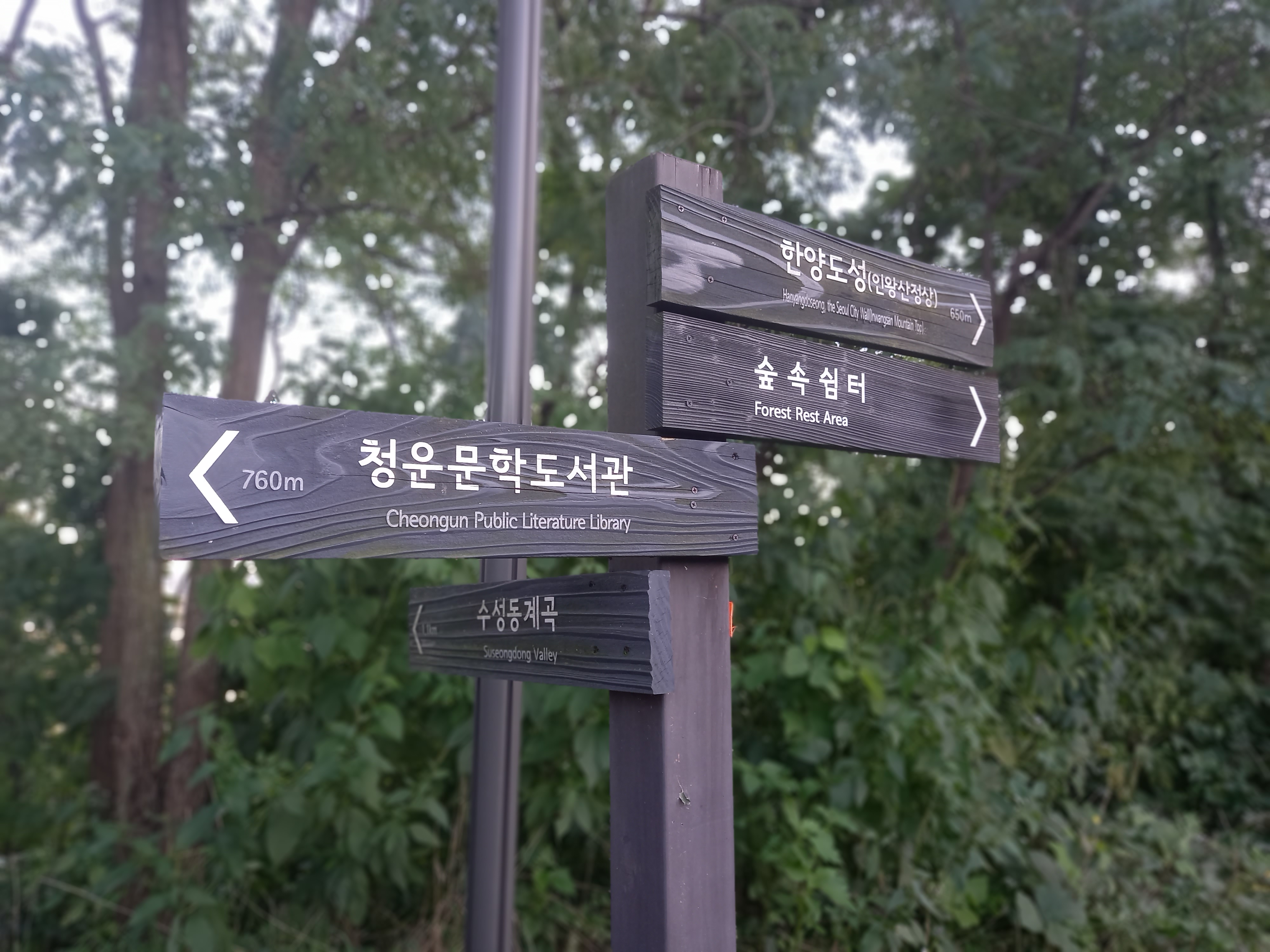 <청운문학도서관 이정표와 윤동주문학관 수성동계곡 방면 이정표>