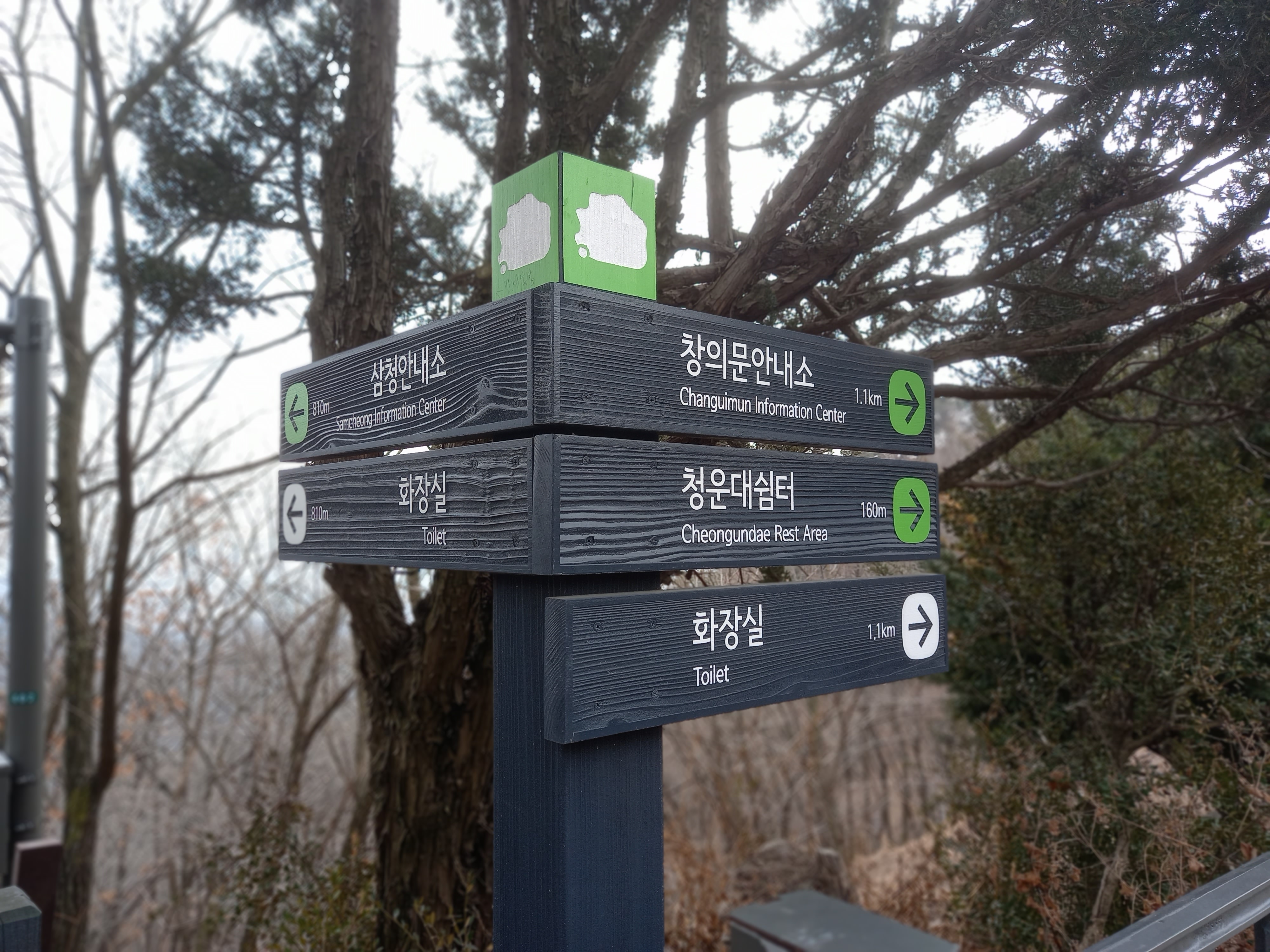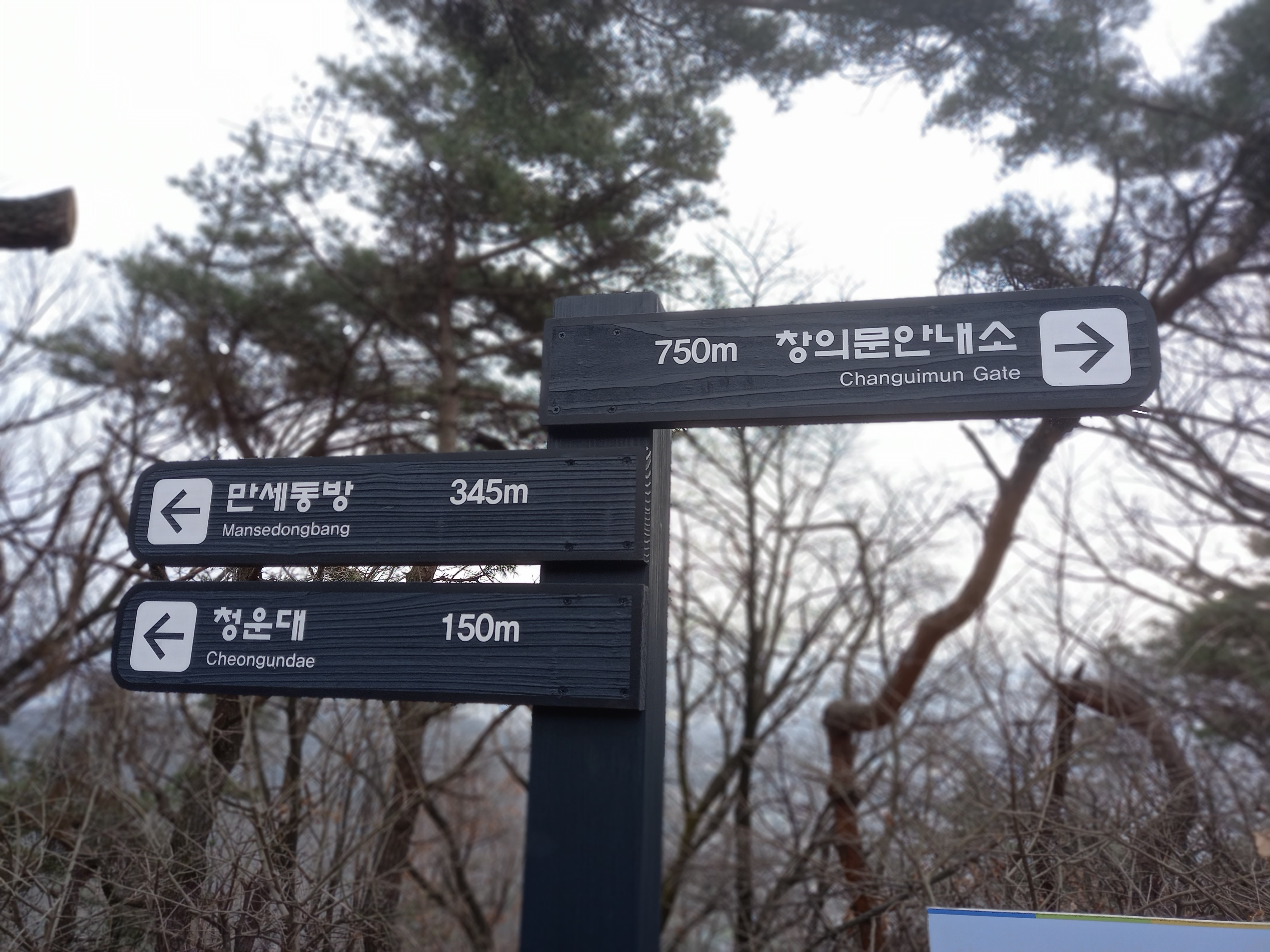 <창의문 안내소에서 청운대와 만세동방 방면 이정표>