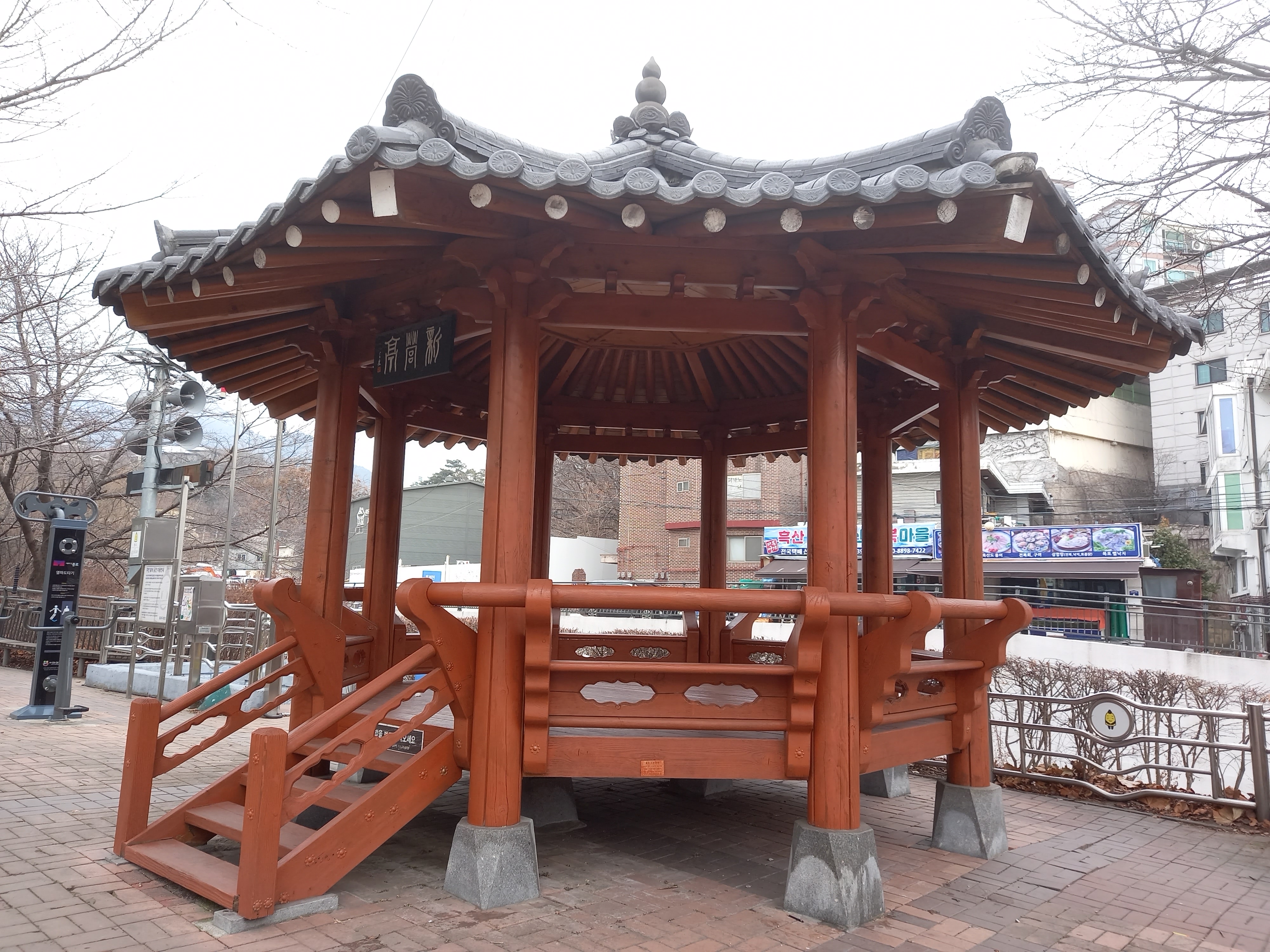 <백사실계곡에서 세검정 방면 주택가의 신영정 쉼터>