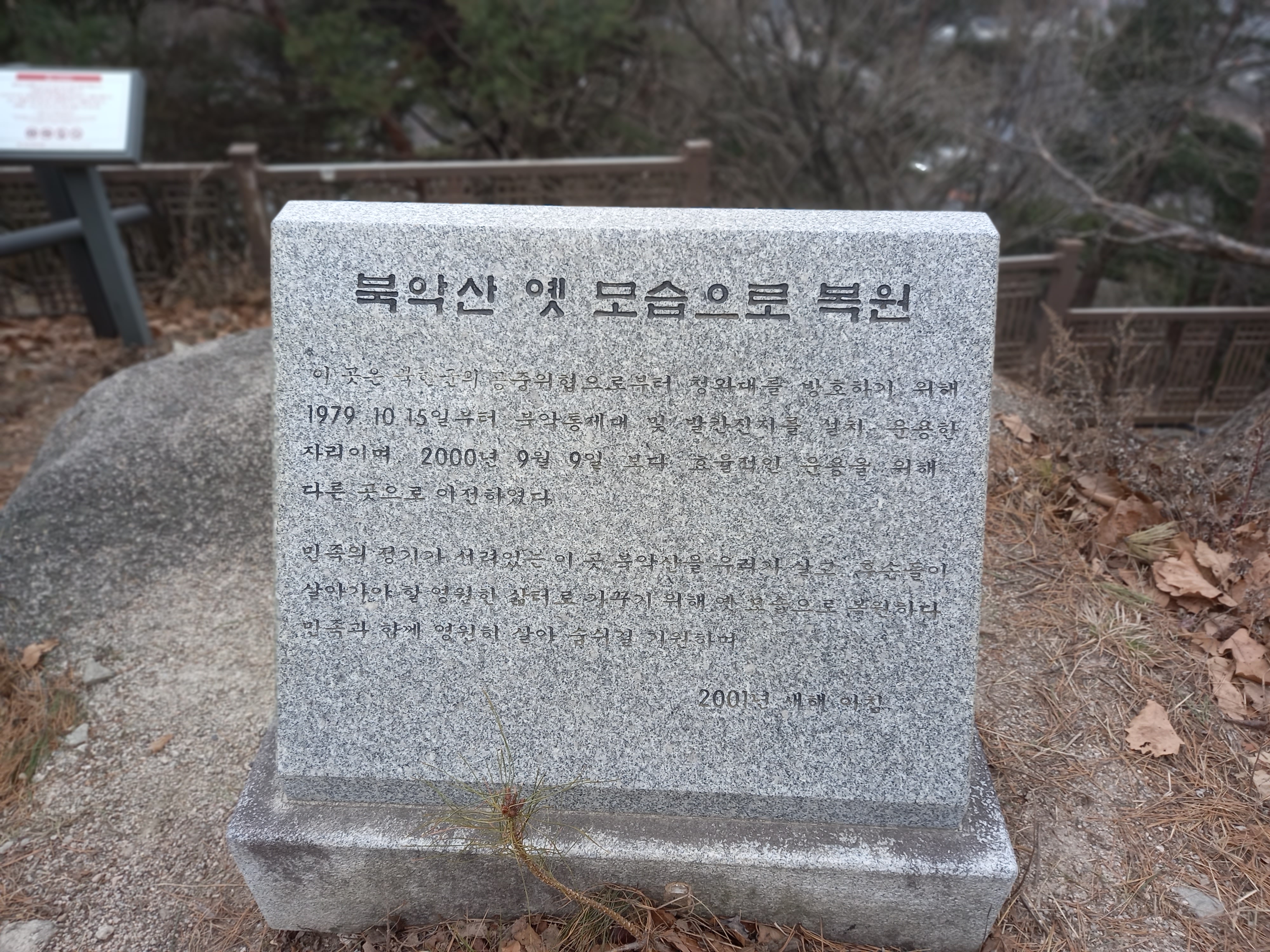 <북악산 정상의 북악산 옛 모습으로 복원 안내 표지석>