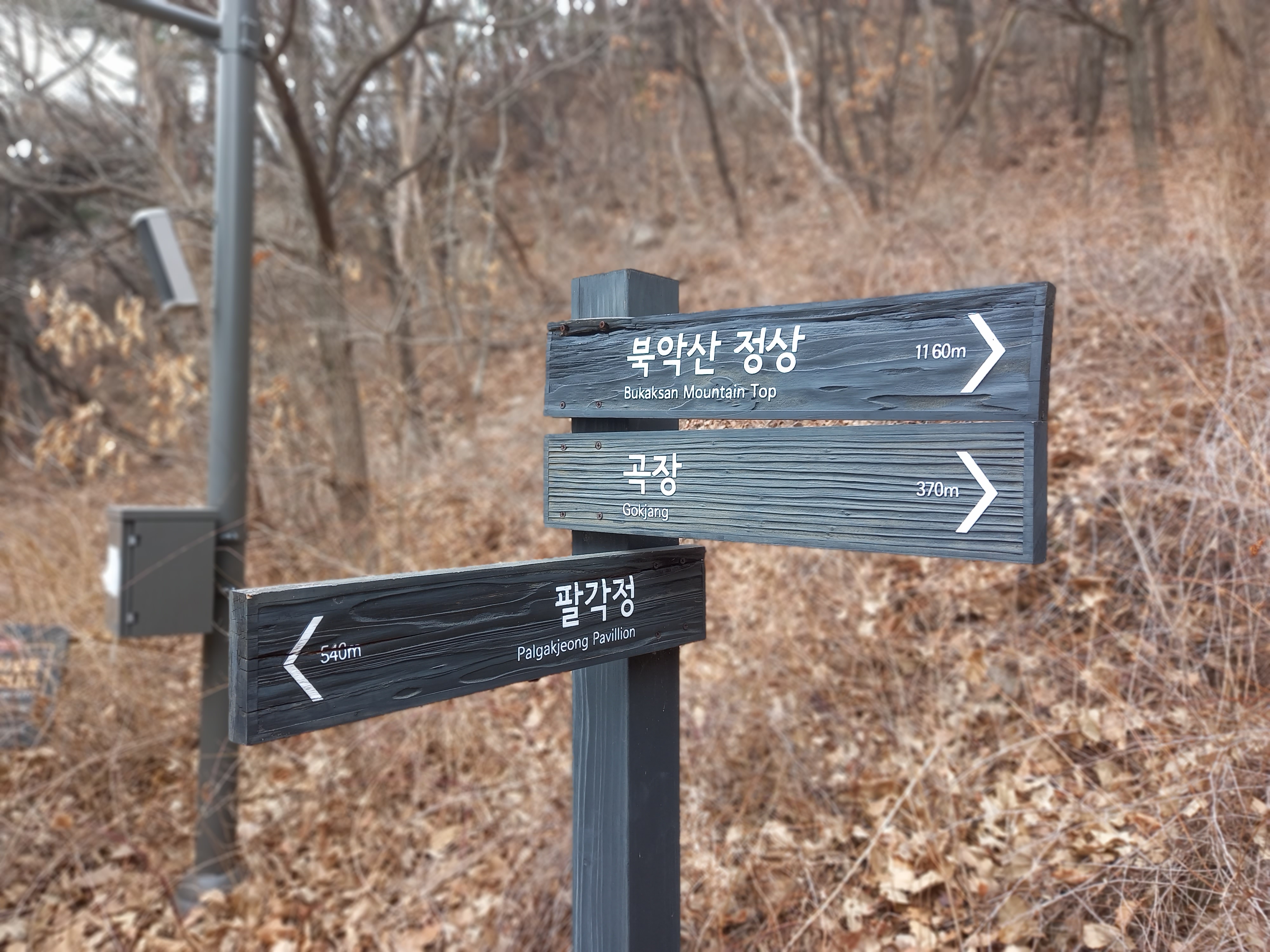 <북악팔각정 곡장안내소와 북악산 정상 방면 갈림길 이정표(곡장)>