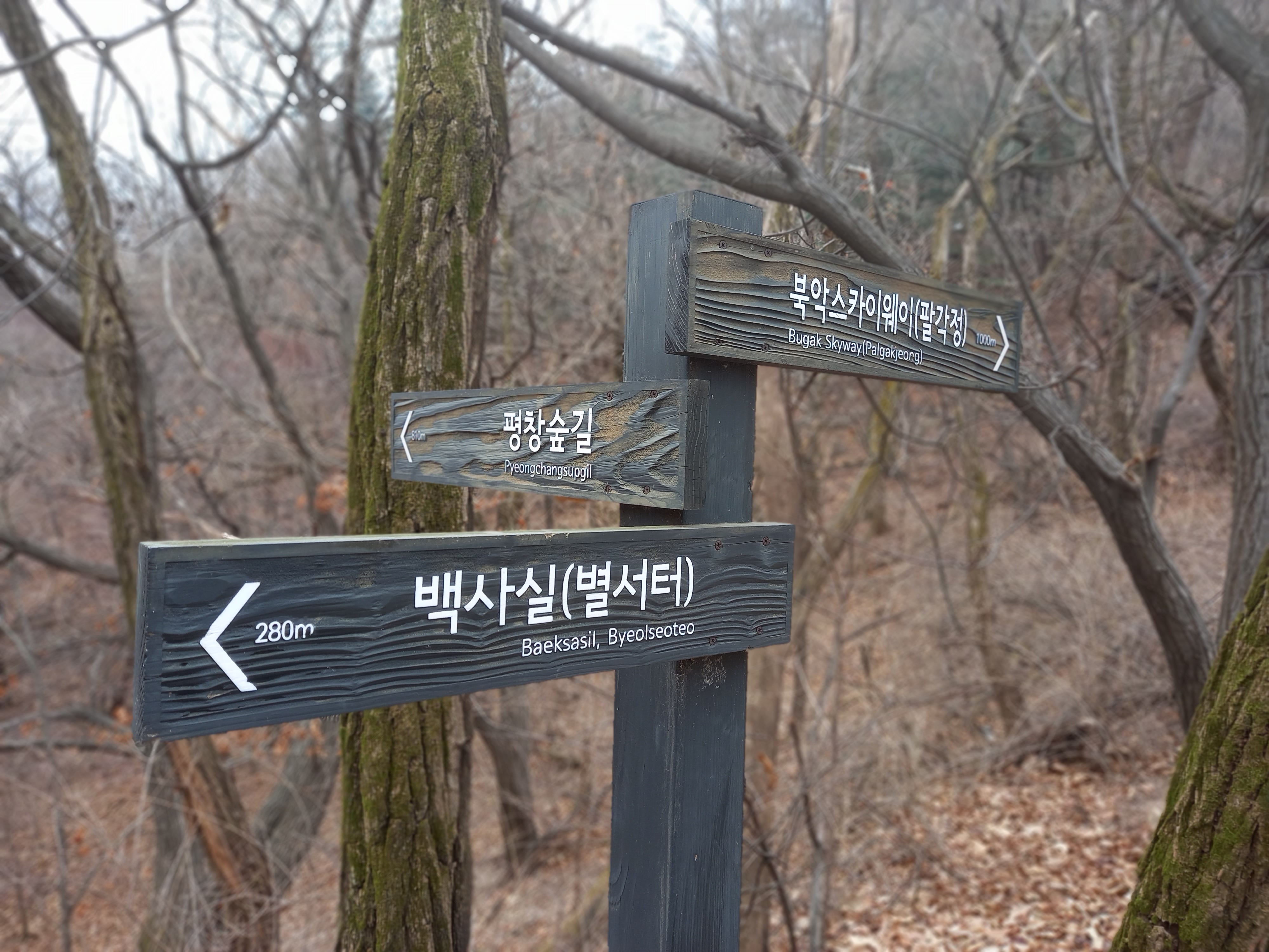 <창의문에서 백악마루와 숙정문 방면 갈림길 이정표>